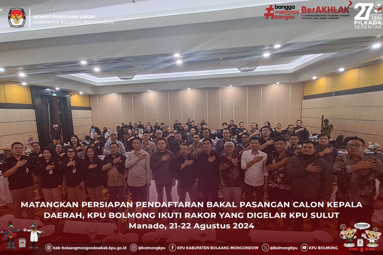 MANTAPKAN PERSIAPAN PENDAFTARAN BAKAL PASANGAN CALON KEPALA DAERAH, KPU BOLMONG IKUTI RAKOR YANG DIGELAR KPU SULUT