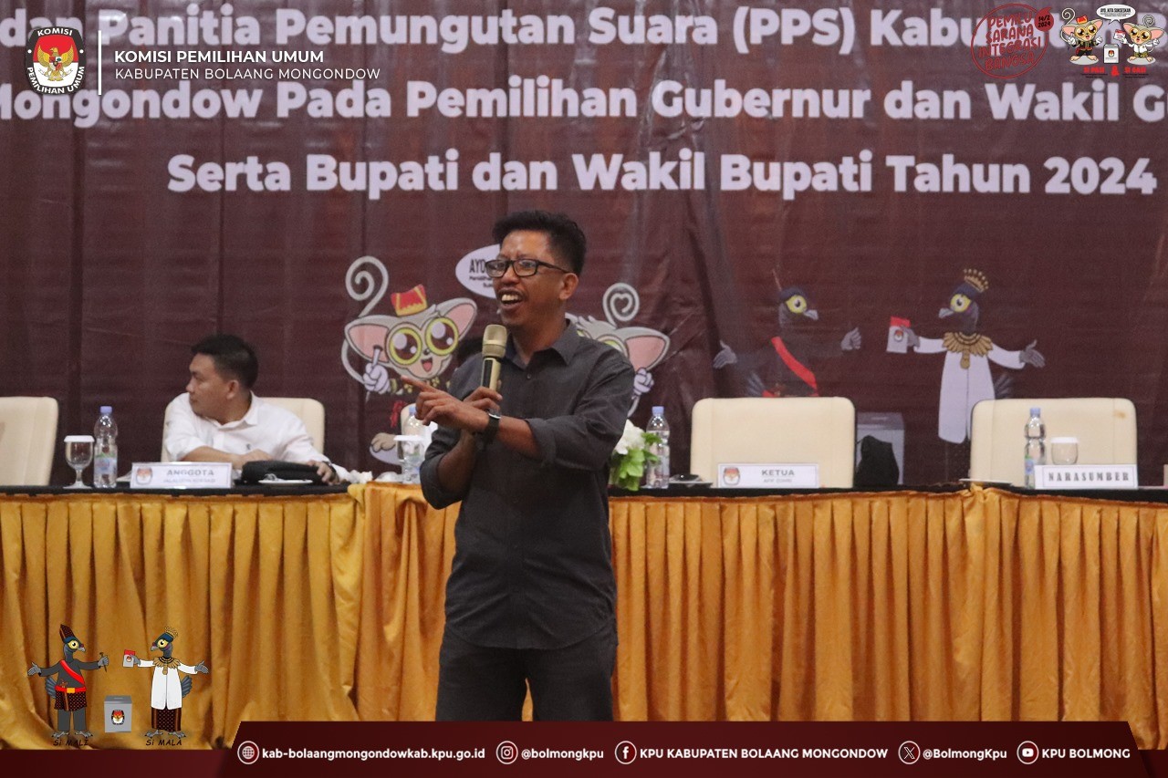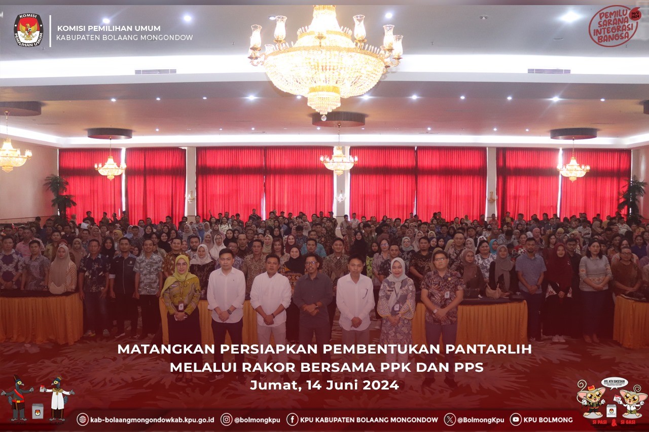 Lolak, kab-bolaangmongondow.kpu.go.id - Jumat (14/6/2024), Ketua Komisi Pemilihan Umum (KPU) Kabupaten Bolaang Mongondow (Bolmong) Afif Zuhri membuka kegiatan Rapat Koordinasi Persiapan Pembentukan Petugas Pemutakhiran Data Pemilih (Pantarlih/PPDP) dengan Panitia Pemilihan Kecamatan (PPK) dan Panitia Pemungutan Suara (PPS) Kabupaten Bolaang Mongondow pada Pemilihan Gubernur dan Wakil Gubernur serta Bupati dan Wakil Bupati Tahun 2024.