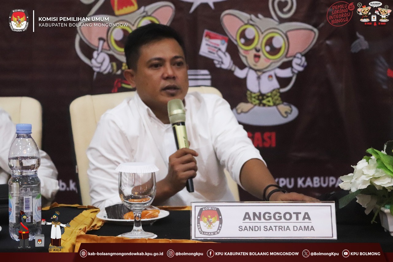 Ketua Divisi Sosialisasi, Pendidikan Pemilih, Parmas dan SDM KPU Bolmong, Sandi Satria Dama pada kesempatannya menyampaikan tujuan rapat ini adalah untuk mempersiapkan pembentukan Pantarlih agar mendapatkan calon-calon yang memenuhi persyaratan serta berjalan sesuai jadwal yang telah ditetapkan.