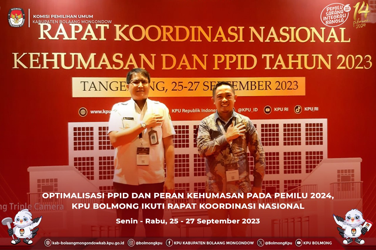 Lolak, kab.bolaangmongondow.kpu.go.id – KPU Kabupaten Bolaang Mongondow mengikuti Rapat Koordinasi Nasional Kehumasan dan PPID Tahun 2023 yang dilaksanakan oleh KPU RI di Novotel Tangerang, Kota Tangerang.