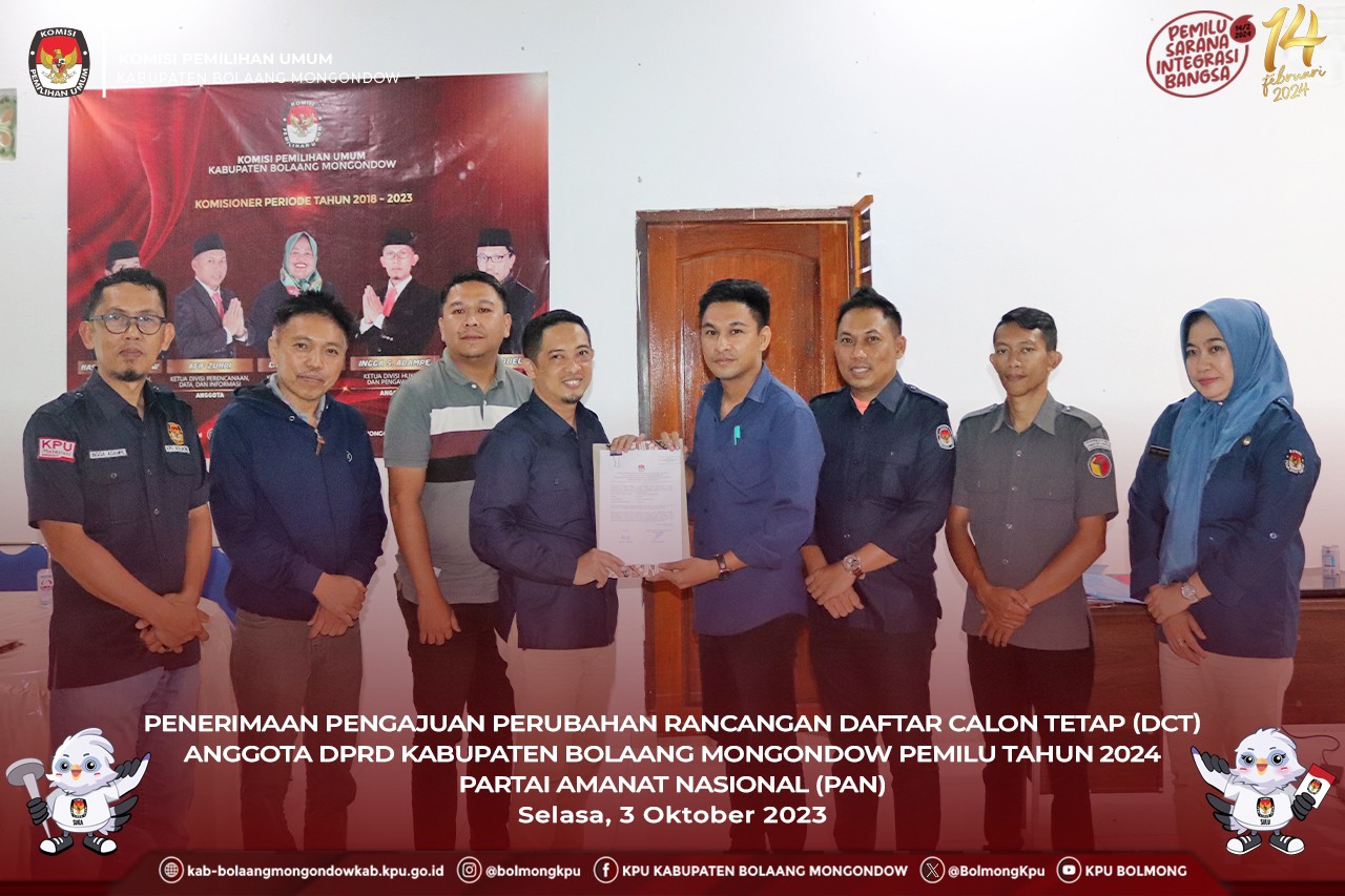 PENERIMAAN PENGAJUAN PERUBAHAN RANCANGAN DAFTAR CALON TETAP (DCT) ANGGOTA DPRD KABUPATEN BOLAANG MONGONDOW PEMILU TAHUN 2024 PARTAI AMANAT NASIONAL (PAN)