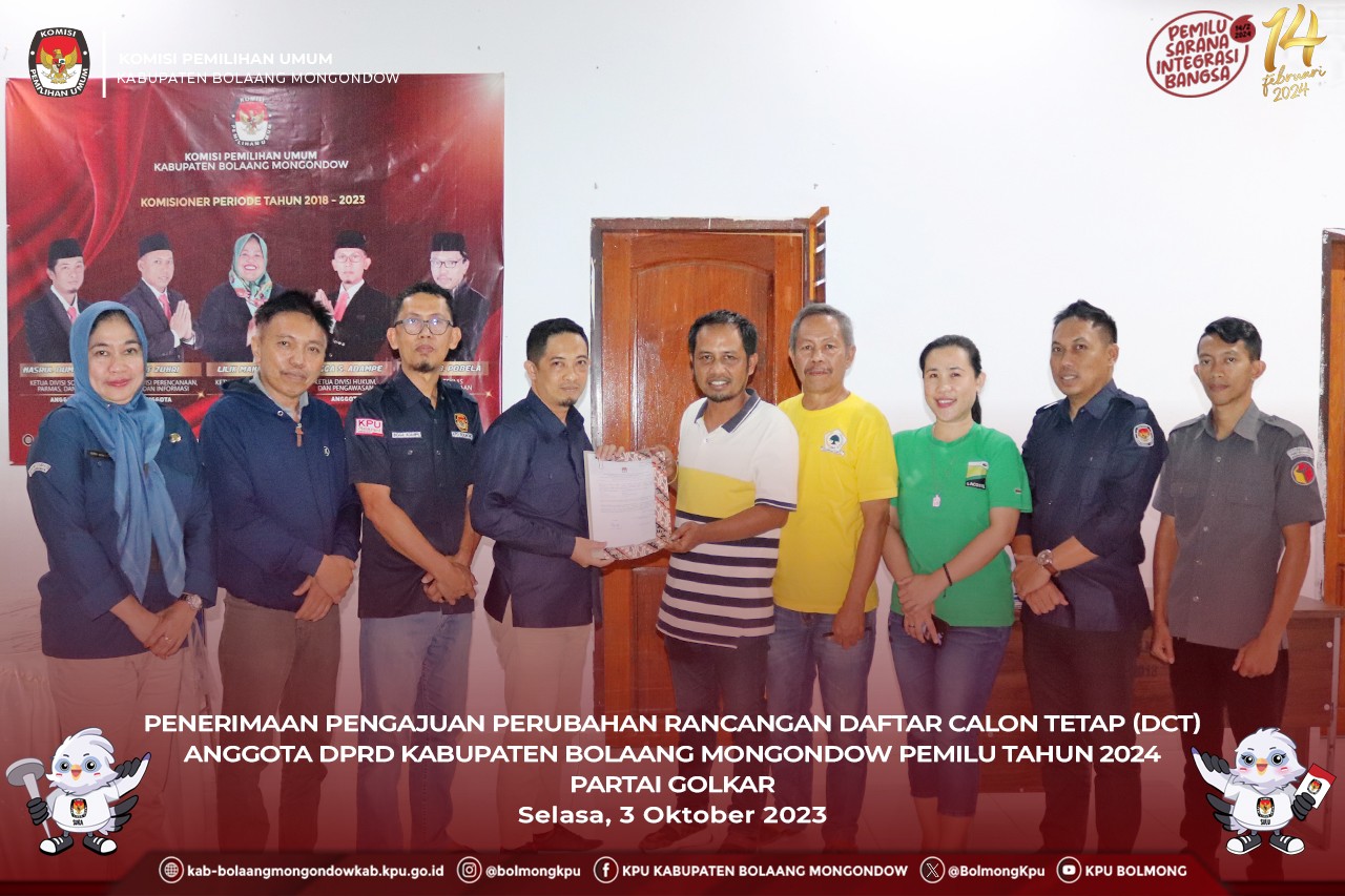 PENERIMAAN PENGAJUAN PERUBAHAN RANCANGAN DAFTAR CALON TETAP (DCT) ANGGOTA DPRD KABUPATEN BOLAANG MONGONDOW PEMILU TAHUN 2024 PARTAI GOLKAR