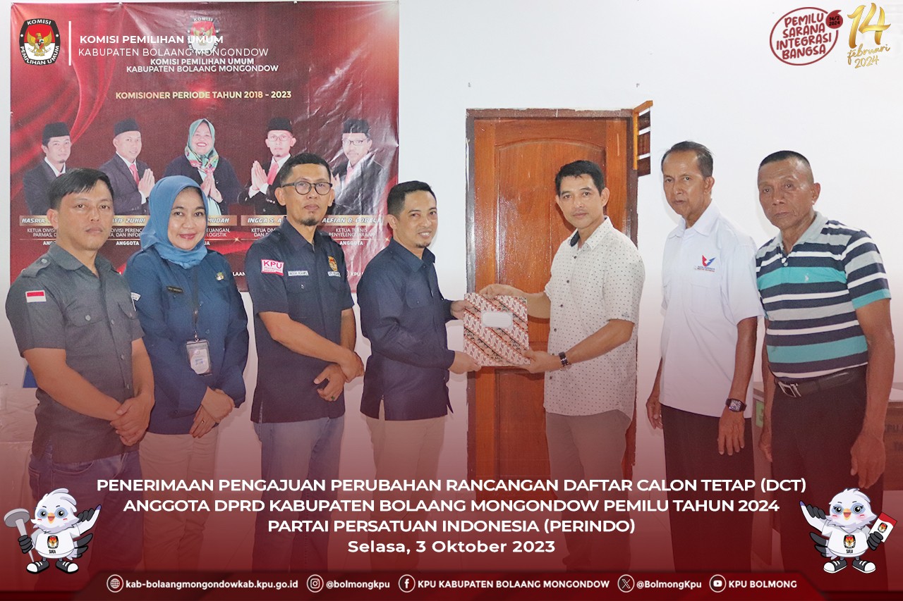 PENERIMAAN PENGAJUAN PERUBAHAN RANCANGAN DAFTAR CALON TETAP (DCT) ANGGOTA DPRD KABUPATEN BOLAANG MONGONDOW PEMILU TAHUN 2024 PARTAI PERSATUAN INDONESIA (PERINDO)