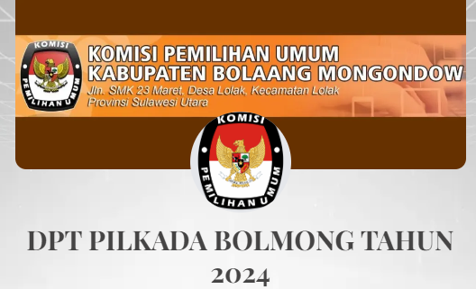 Berikut merupakan Daftar Pemilih Tetap (DPT) Kabupaten Bolaang Mongondow untuk Pemilihan Serentak Tahun 2024