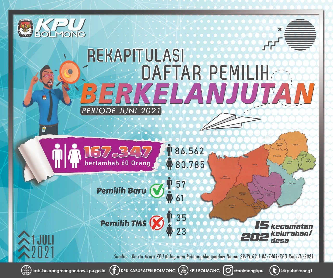 PENGUMUMAN DAFTAR PEMILIH BERKELANJUTAN TAHUN 2021 PERIODE BULAN JUNI 2021 KPU KABUPATEN BOLAANG MONGONDOW