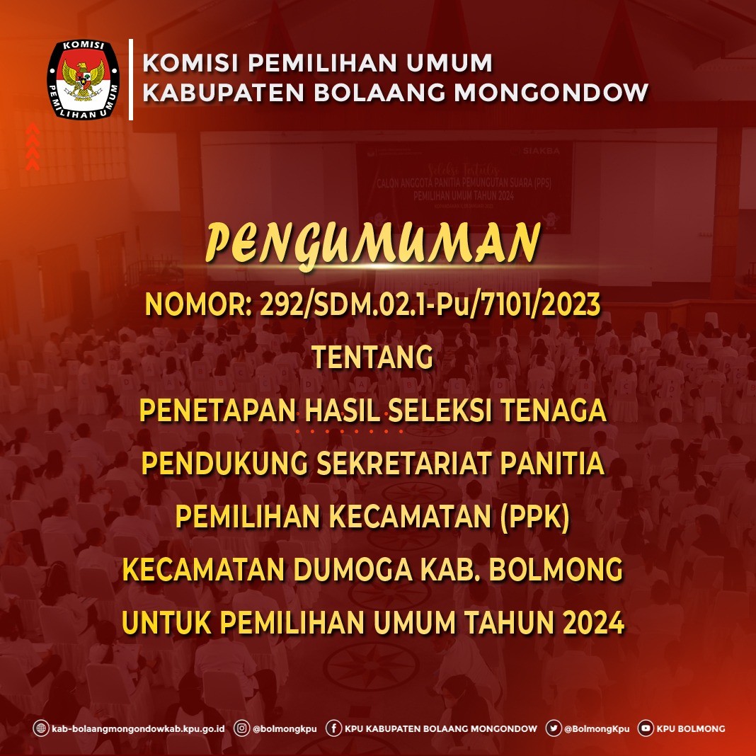 PENGUMUMAN HASIL SELEKSI TENAGA PENDUKUNG PPK KECAMATAN DUMOGA