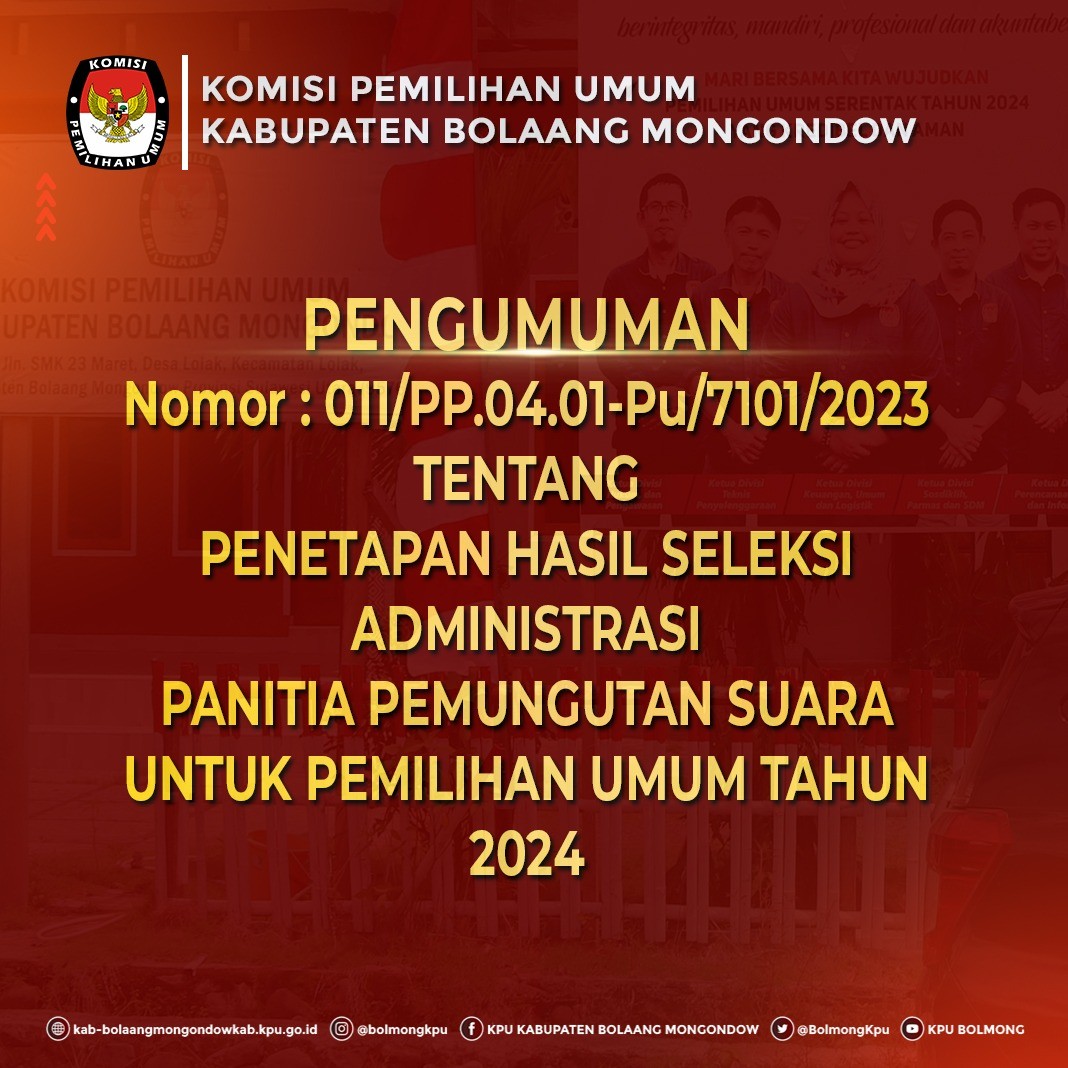 PENGUMUMAN PENETAPAN HASIL SELEKSI ADMINISTRASI PANITIA PEMUNGUTAN SUARA UNTUK PEMILIHAN UMUM TAHUN 2024