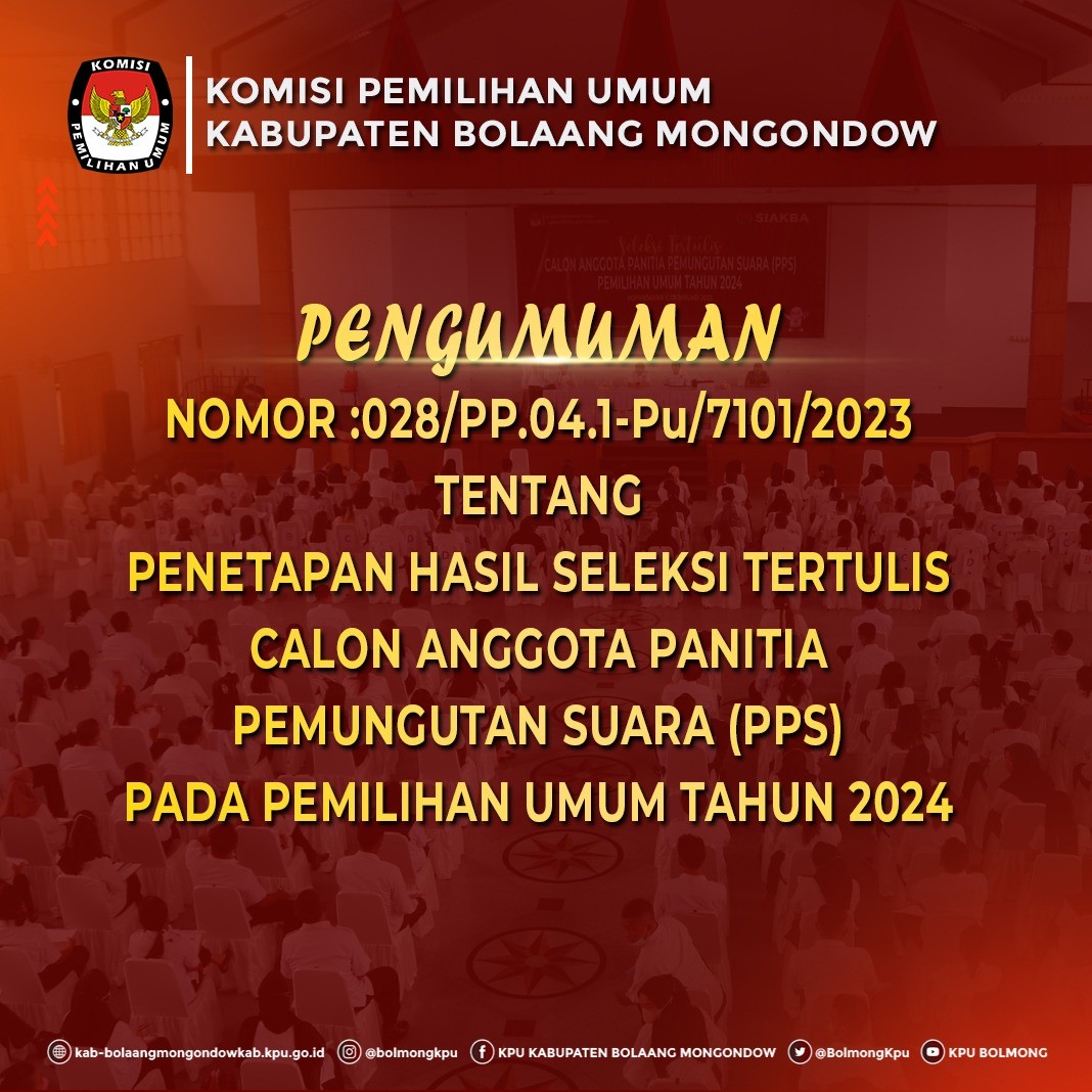 PENGUMUMAN PENETAPAN HASIL SELEKSI TERTULIS CALON ANGGOTA PANITIA PEMUNGUTAN SUARA (PPS) PADA PEMILIHAN UMUM TAHUN 2024