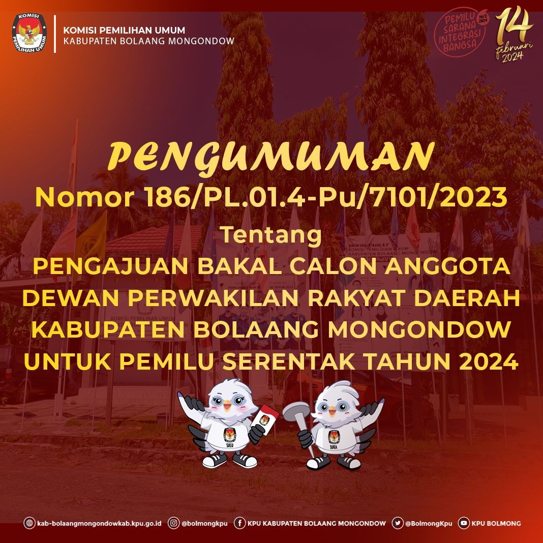 PENGUMUMAN PENGAJUAN BAKAL CALON ANGGOTA DEWAN PERWAKILAN RAKYAT DAERAH KABUPATEN BOLAANG MONGONDOW UNTUK PEMILU SERENTAK TAHUN 2024