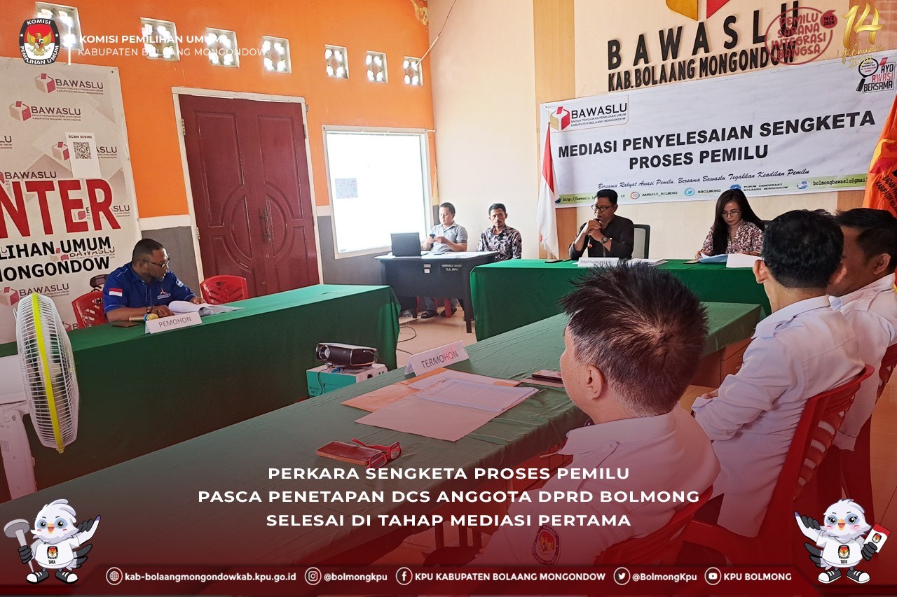 PERKARA SENGKETA PROSES PEMILU PASCA PENETAPAN DCS ANGGOTA DPRD BOLMONG SELESAI DI TAHAP MEDIASI PERTAMA