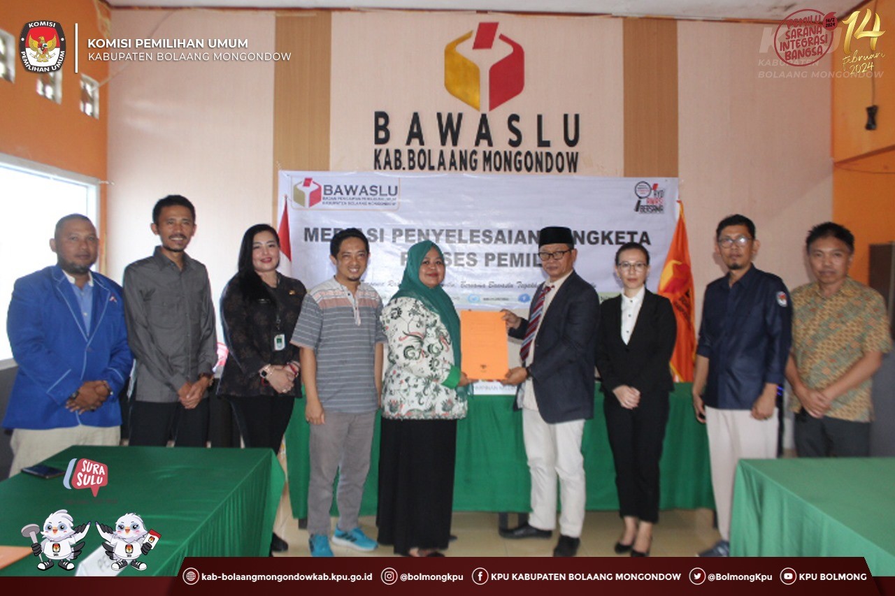 Lolak, kab-bolaangmongondow.kpu.go.id - Komisi Pemilihan Umum (KPU) Kabupaten Bolaang Mongondow memenuhi panggilan Mediasi Penyelesaian Sengketa Proses Pemilu Pasca Penetapan DCS Anggota DPRD Kabupaten Bolaang Mongondow di Kantor Bawaslu Bolmong, Kamis (24/8). Permohonan penyelesaian sengketa proses Pemilu dimaksud diajukan oleh Partai Demokrat.