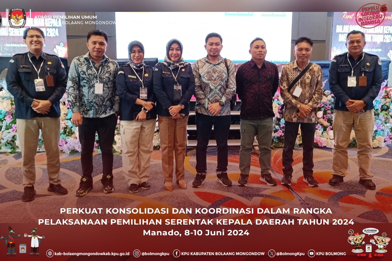 Lolak, kab-bolaangmongondow.kpu.go.id - Komisi Pemilihan Umum (KPU) Kabupaten Bolaang Mongondow (Bolmong) mengikuti kegiatan Rapat Konsolidasi Daerah dalam rangka Pelaksanaan Pemilihan Kepala Daerah (Pilkada) Serentak Tahun 2024.