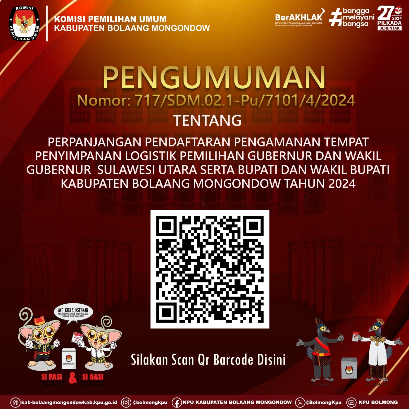 Bahwa sesuai dengan Berita Acara Panitia Seleksi Pengadaan Tenaga Pengamanan Tempat Penyimpanan Logistik Pada Pemilihan Gubernur Dan Wakil Gubernur Sulawesi Utara Serta Bupati Dan Wakil Bupati Tahun 2024 Pada Sekretariat Komisi Pemilihan Umum Kabupaten Bolaang Mongondow Nomor: 395/SDM.02.1-BA/7101/4/2024, ditetapkan untuk dilakukan perpanjangan penerimaan pendaftaran.