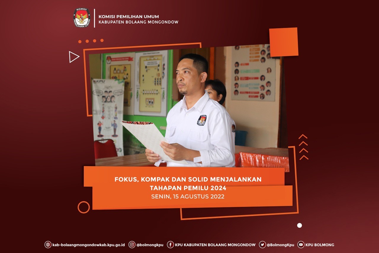 Di hadapan peserta apel, beliau mengapresiasi komitmen jajaranya untuk mengikuti apel pagi setiap minggunya, hal ini mencerminkan peningkatan kedisiplinan dan tanggung jawab dalam melaksanakan tugas menjalankan tahapan Pemilu 2024. Lebih lanjut beliau juga menekankan pentingnya menjaga fokus, membangun kekompakan dan soliditas, khususnya dalam menjalankan tahapan verifikasi administrasi yang dilaksanakan pada tanggal 16 sampai dengan 29 Agustus 2022, sehingga sebagai penyelenggara Pemilu di tingkat kabupaten, KPU Bolmong dapat menyelesaikan tahapan dimaksud tepat waktu sebagaimana yang telah ditetapkan dalam regulasi.