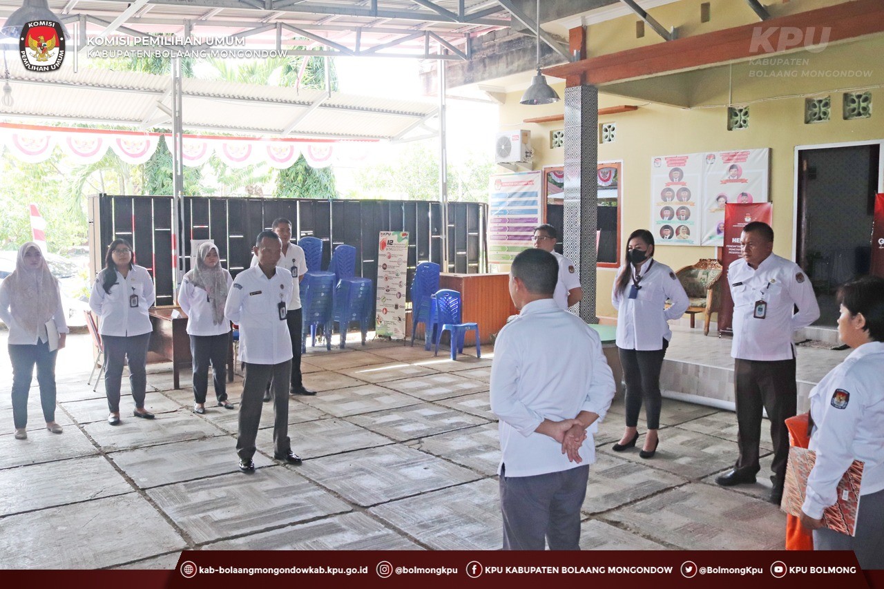 Lolak, kab-bolaangmongondow.kpu.go.id - Ketua Divisi Sosialisasi, Pendidikan Pemilih, Parmas dan SDM, Hasrul Dumambow menjadi Pembina Apel Pagi Senin, (15/8) yang diikuti oleh pejabat dan pegawai di Lingkungan KPU Kabupaten Bolaang Mongondow.