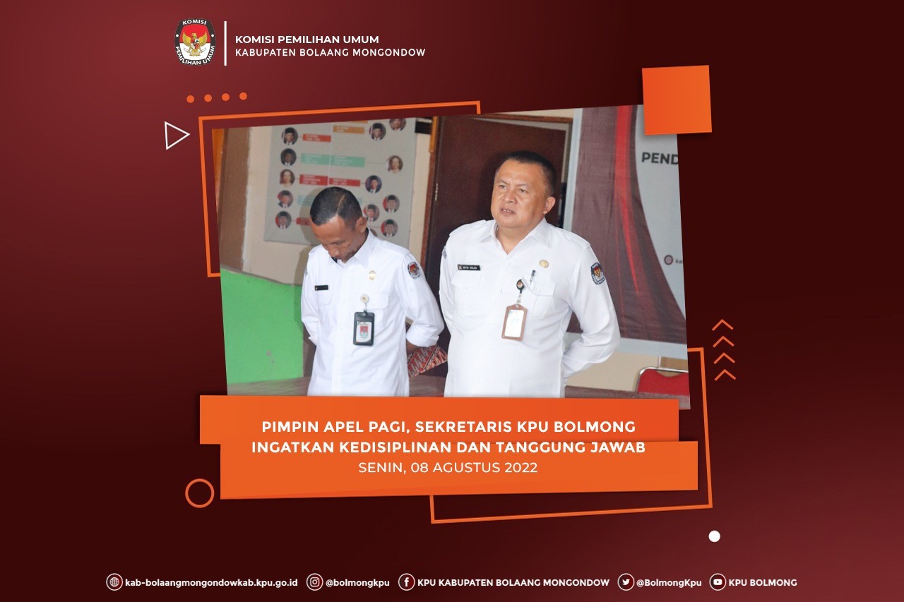 PIMPIN APEL PAGI, SEKRETARIS KPU BOLMONG INGATKAN DISIPLIN DAN TANGGUNG JAWAB