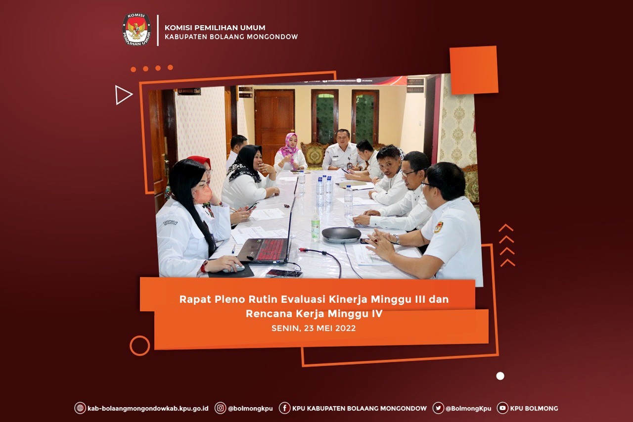 PLENO RUTIN KPU BOLMONG, EVALUASI DAN BAHAS RENCANA KERJA MINGGU IV MEI