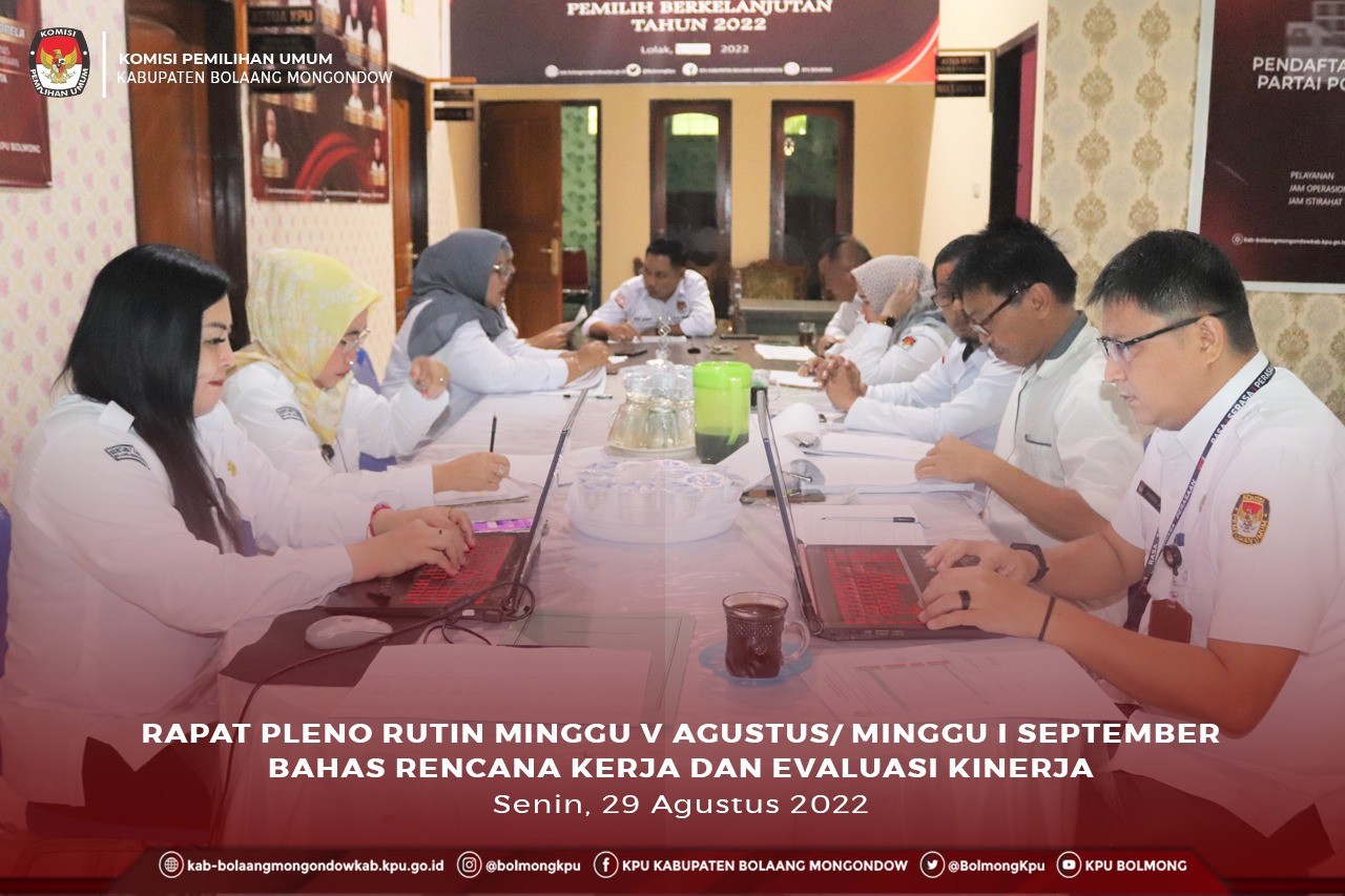 PLENO RUTIN KPU BOLMONG, EVALUASI DAN BAHAS RENCANA KERJA MINGGU V AGUSTUS 2022
