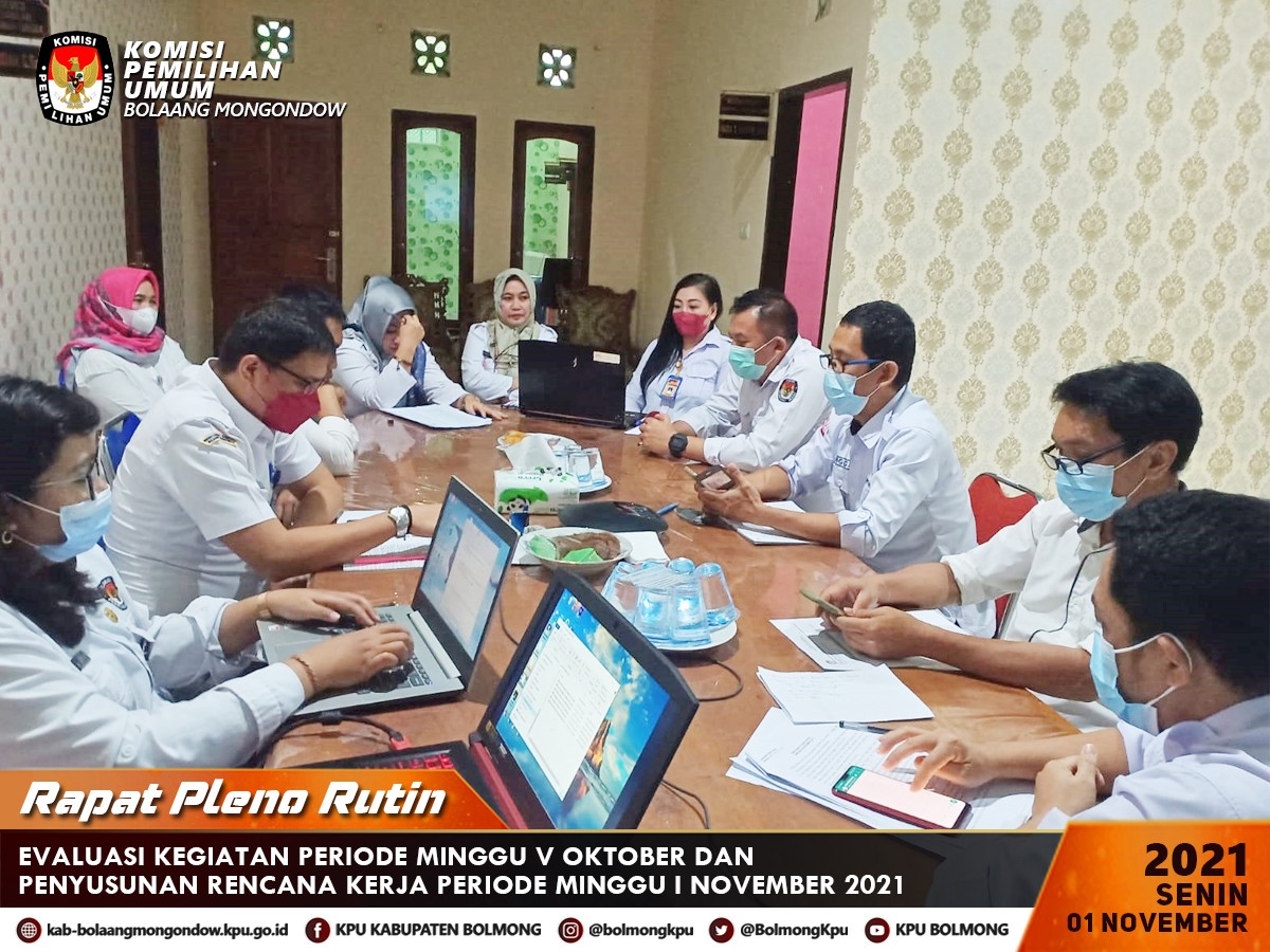 PLENO RUTIN KPU BOLMONG, EVALUASI DAN BAHAS RENCANA KERJA PERIODE MINGGU I NOVEMBER