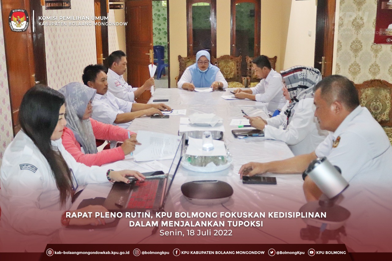 PLENO RUTIN KPU BOLMONG, FOKUSKAN KEDISIPLINAN DALAM MENJALANKAN TUPOKSI