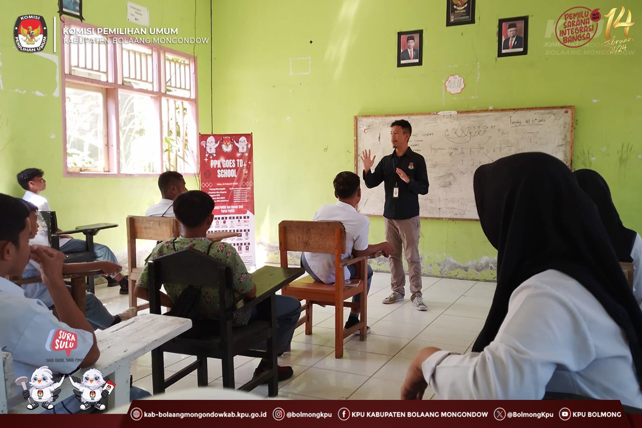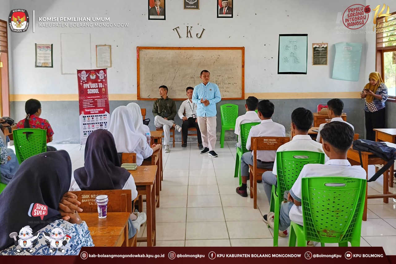“PPK GOES TO SCHOOL" KPU BOLMONG LANJUT SASAR SISWA-SISWI MA ULUL ALBAB AYONG DAN SMK NEGERI SANG TOMBOLANG