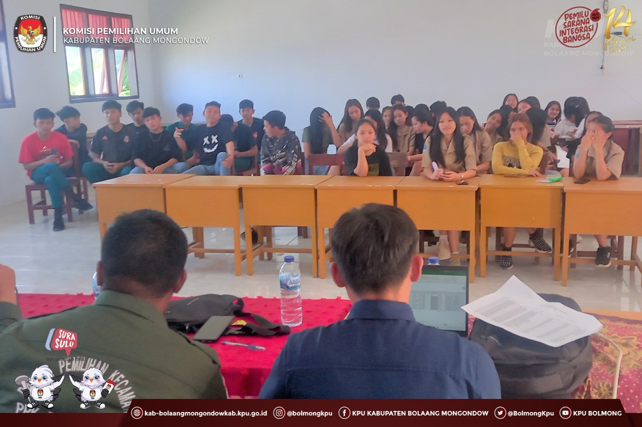 Lolak, kab-bolaangmongondow.kpu.go.id - Guna mendorong pemilih pemula agar melek politik dan ikut berpartisipasi dalam Pemilu Serentak Tahun 2024 khususnya bagi mereka yang sudah memiliki hak pilih, KPU Kabupaten Bolaang Mongondow melalui Panitia Pemilihan Kecamatan (PPK) Passi Timur mengadakan sosialisasi yang bertajuk “PPK Goes to School” (8/9).