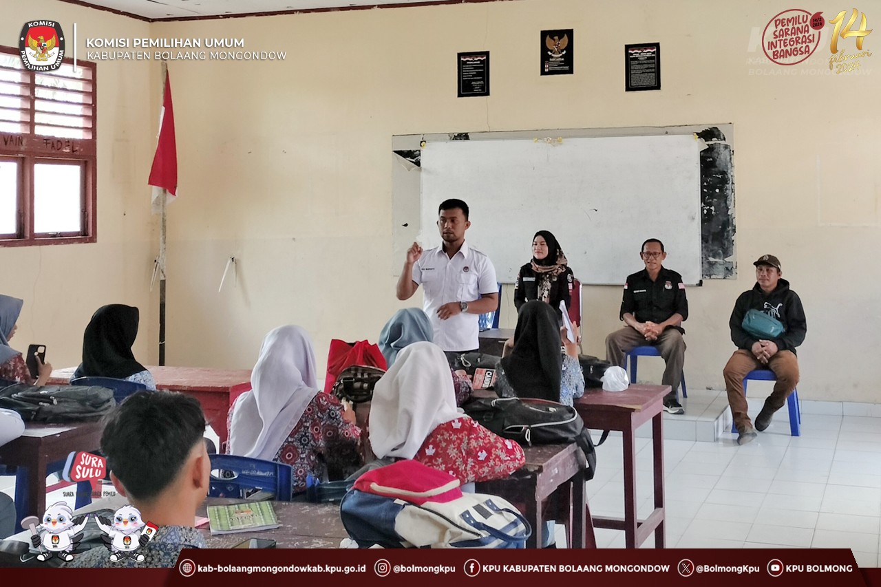 Lolak - kab-bolaangmongondow.kpu.go.id - guna meningkatkan partisipasi masyarakat dalam Pemilu 2024, KPU Kabupaten Bolaang Mongondow (Bolmong) melalui Panitia Pemilihan Kecamatan (PPK) sasar pemilih Milenial di wilayah Kecamatan Bolaang melalui program sosialisasi bertajuk “PPK Goes to School”, Jumat (22/11/2023).