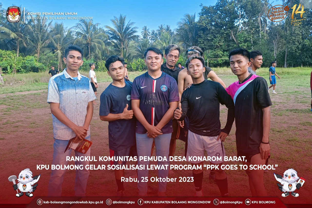 RANGKUL KOMUNITAS PEMUDA DESA KONAROM BARAT, KPU BOLMONG GELAR SOSIALISASI LEWAT PROGRAM “PPK GOES TO SCHOOL