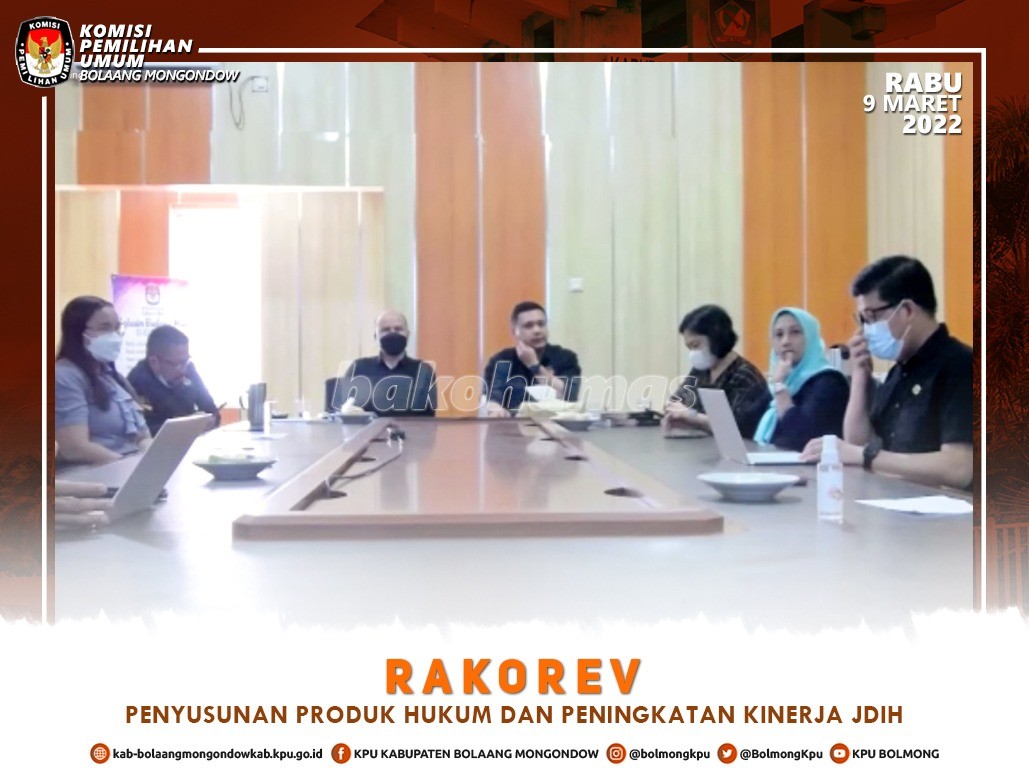 RAPAT KOORDINASI EVALUASI PENYUSUNAN PRODUK HUKUM DAN PENINGKATAN KINERJA JDIH, KPU BOLMONG RAIH PENGHARGAAN “PENGELOLAAN JDIH TERBAIK TAHUN 2021”