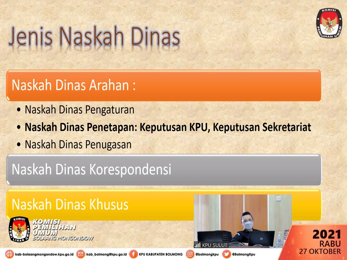 Selanjutnya penyampaian materi secara panel oleh Para Narasumber yaitu Bapak Meidy Y. Tinangon (Ketua Divisi Hukum dan Pengawasan KPU Provinsi Sulawesi Utara) yang menyampaikan materi terkait Prinsip-Prinsip Penyusunan Produk Hukum, Bapak Carles Worotitjan (Plt. Kepala Bagian Hukum, Teknis dan Hupmas KPU Provinsi Sulawesi Utara) yang menyampaikan materi terkait Prosedur Legal Drafting Keputusan KPU Kabupaten/Kota, dan Ibu Lidya R. Rantung (Kasubbag Hukum KPU Provinsi Sulawesi Utara) yang menyampaikan materi terkait Teknik Legal Drafting dan Tata Naskah Dinas Keputusan.