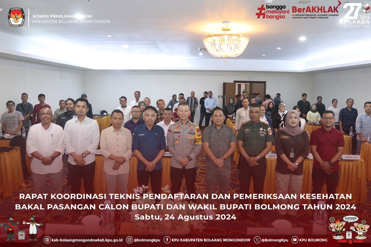 RAPAT KOORDINASI TEKNIS PENDAFTARAN DAN PEMERIKSAAN KESEHATAN BAKAL PASANGAN CALON BUPATI DAN WAKIL BUPATI BOLMONG TAHUN 2024