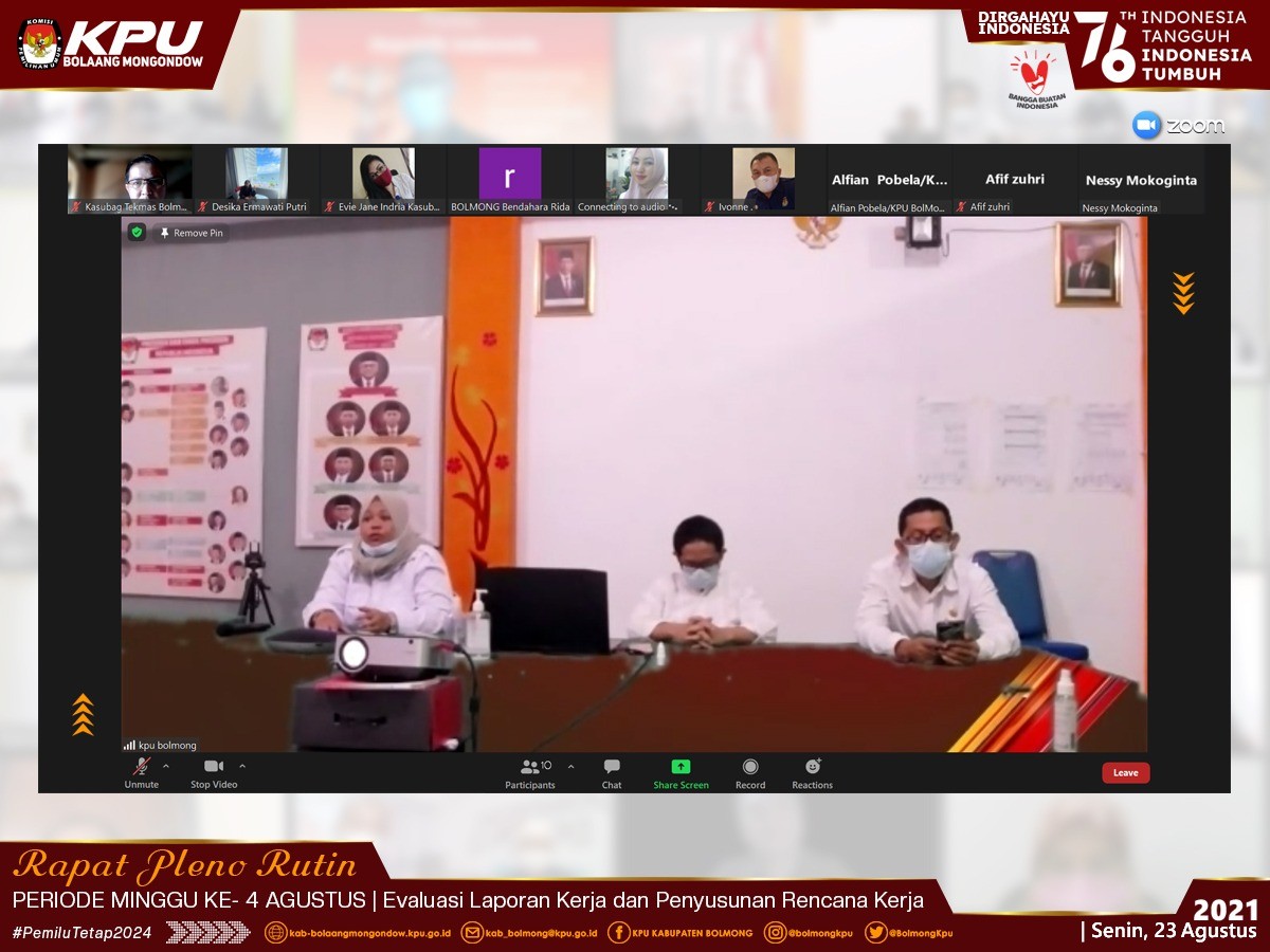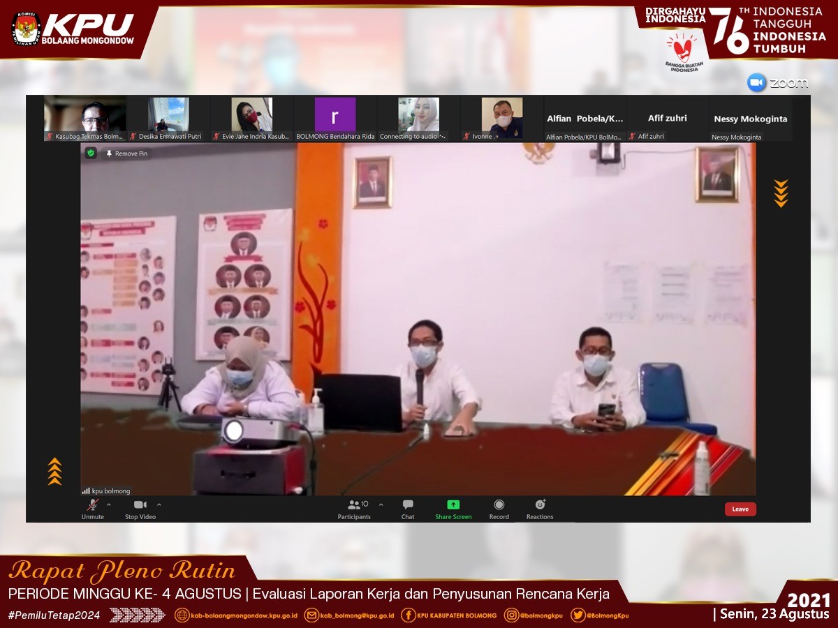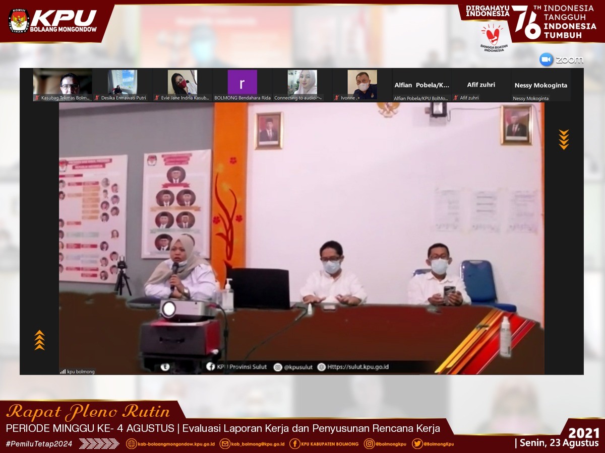 RAPAT PLENO RUTIN KPU BOLAANG MONGONDOW BAHAS EVALUASI LK DAN RK PERIODE MINGGU KE- 4 AGUSTUS