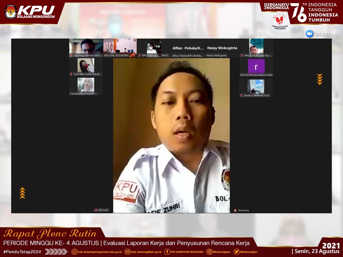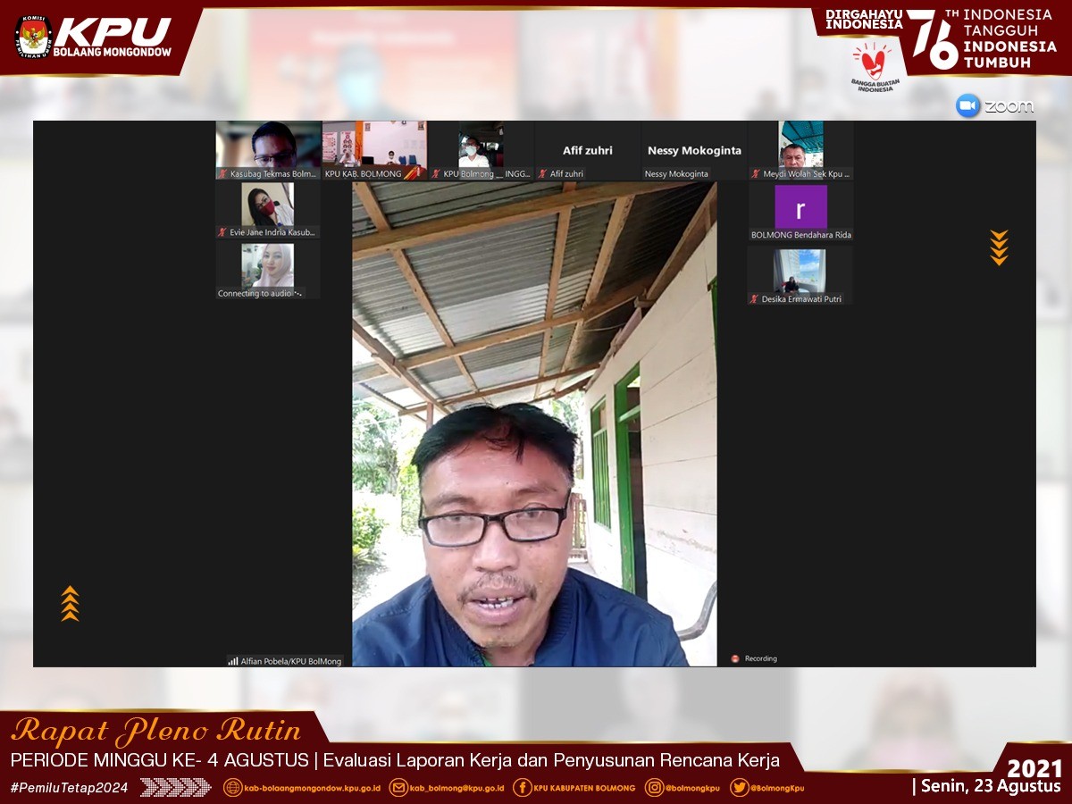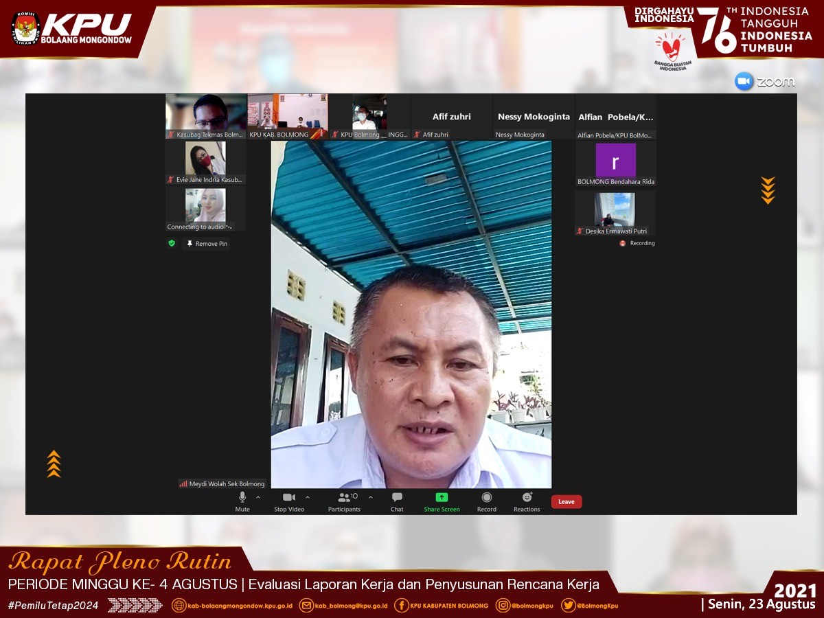 RAPAT PLENO RUTIN KPU BOLAANG MONGONDOW BAHAS EVALUASI LK DAN RK PERIODE MINGGU KE- 4 AGUSTUS