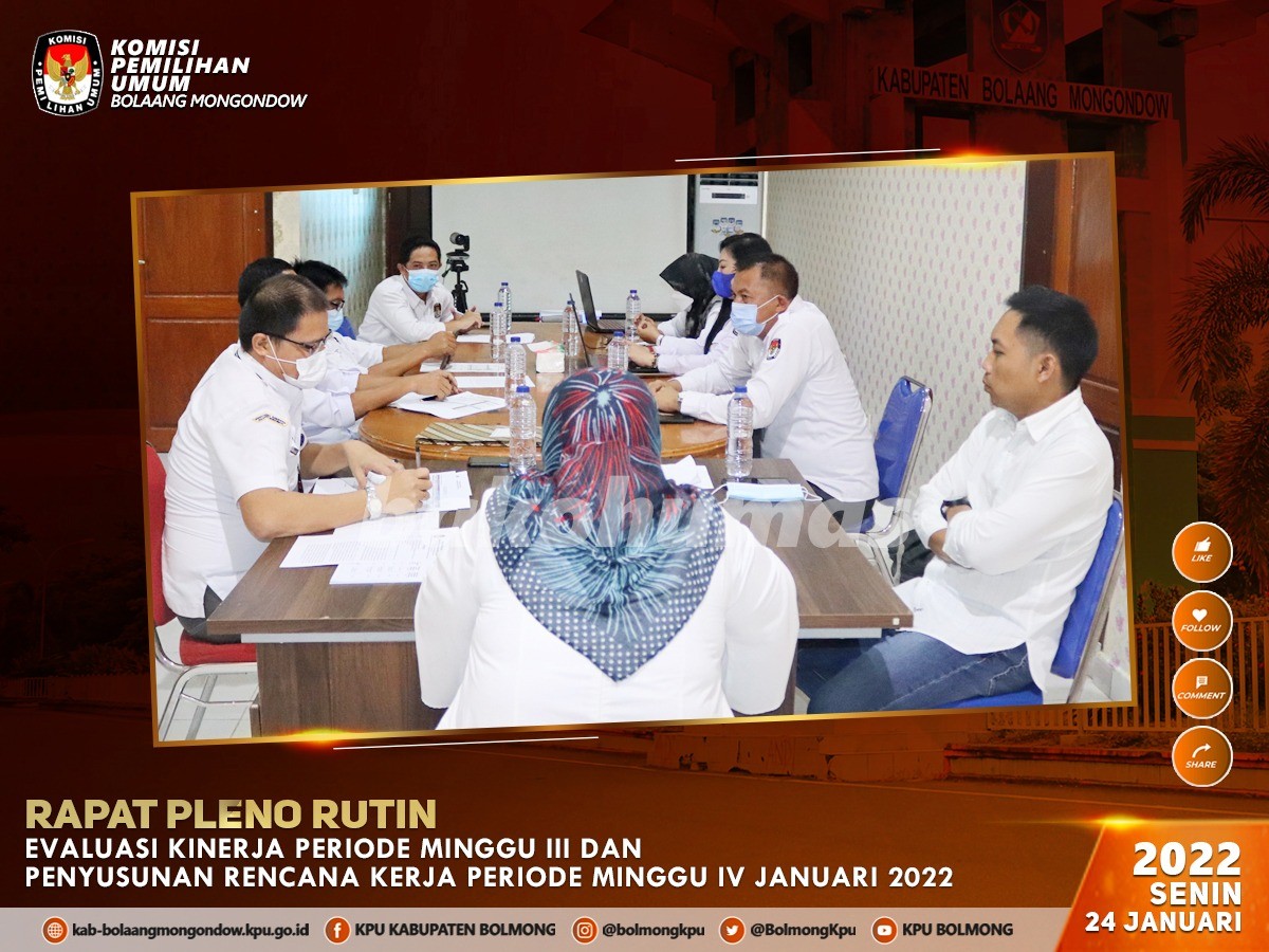 RAPAT PLENO RUTIN KPU BOLMONG, EVALUASI DAN BAHAS RENCANA KERJA MINGGU IV JANUARI