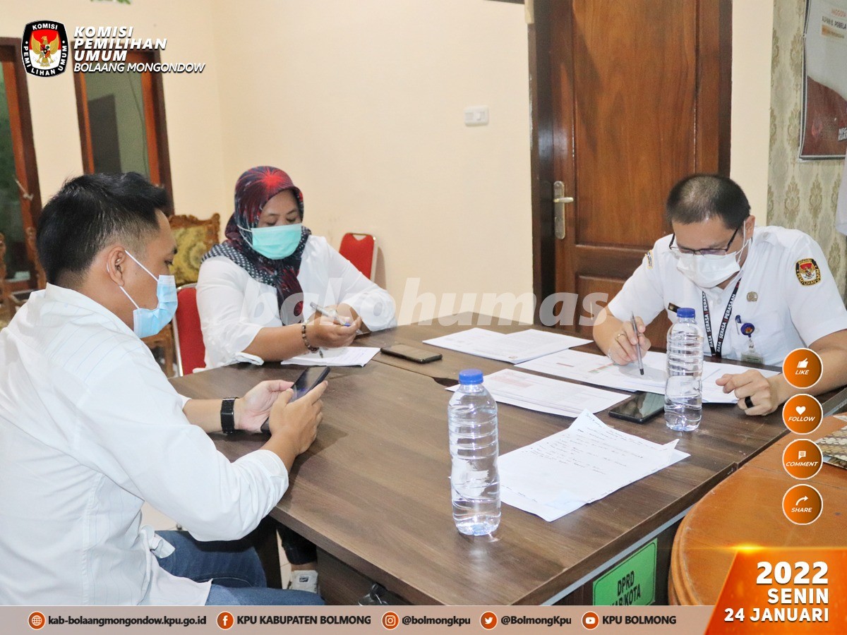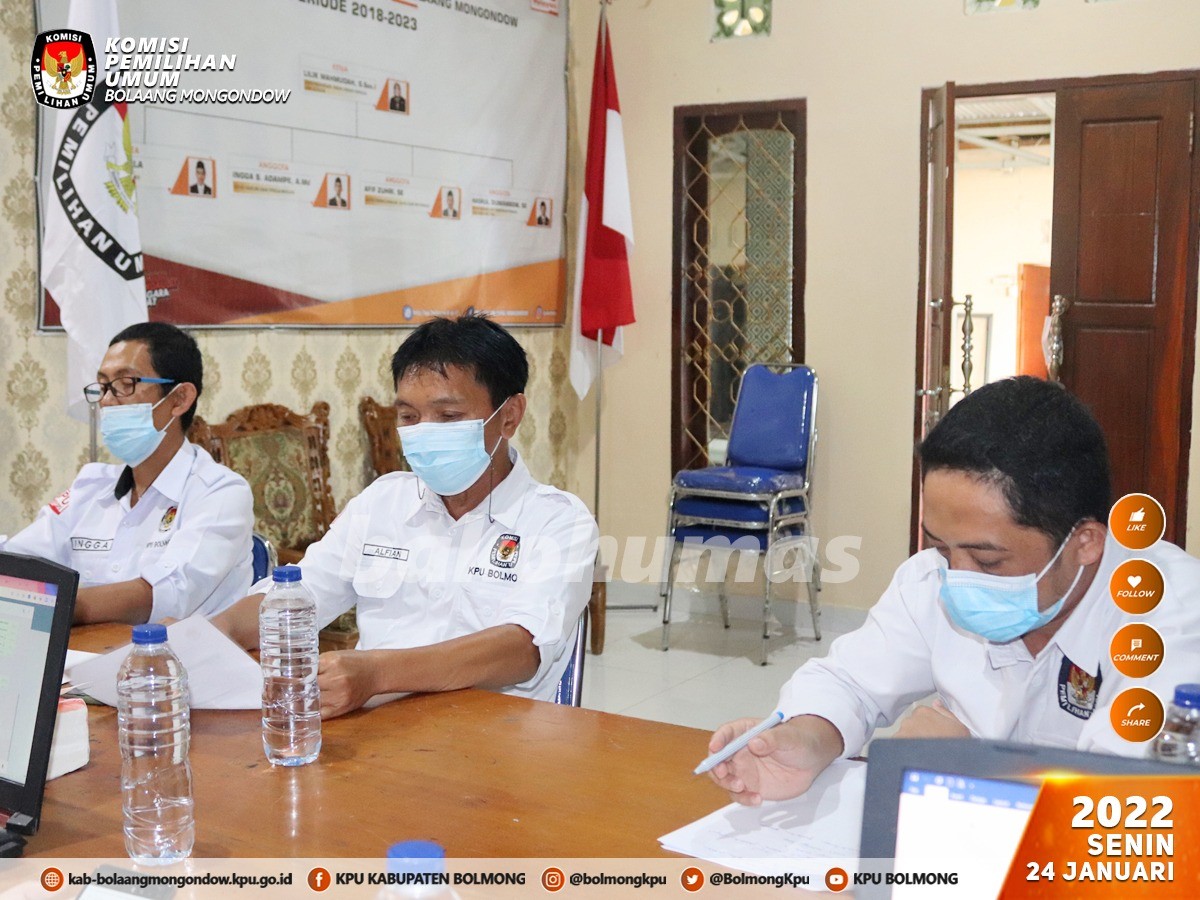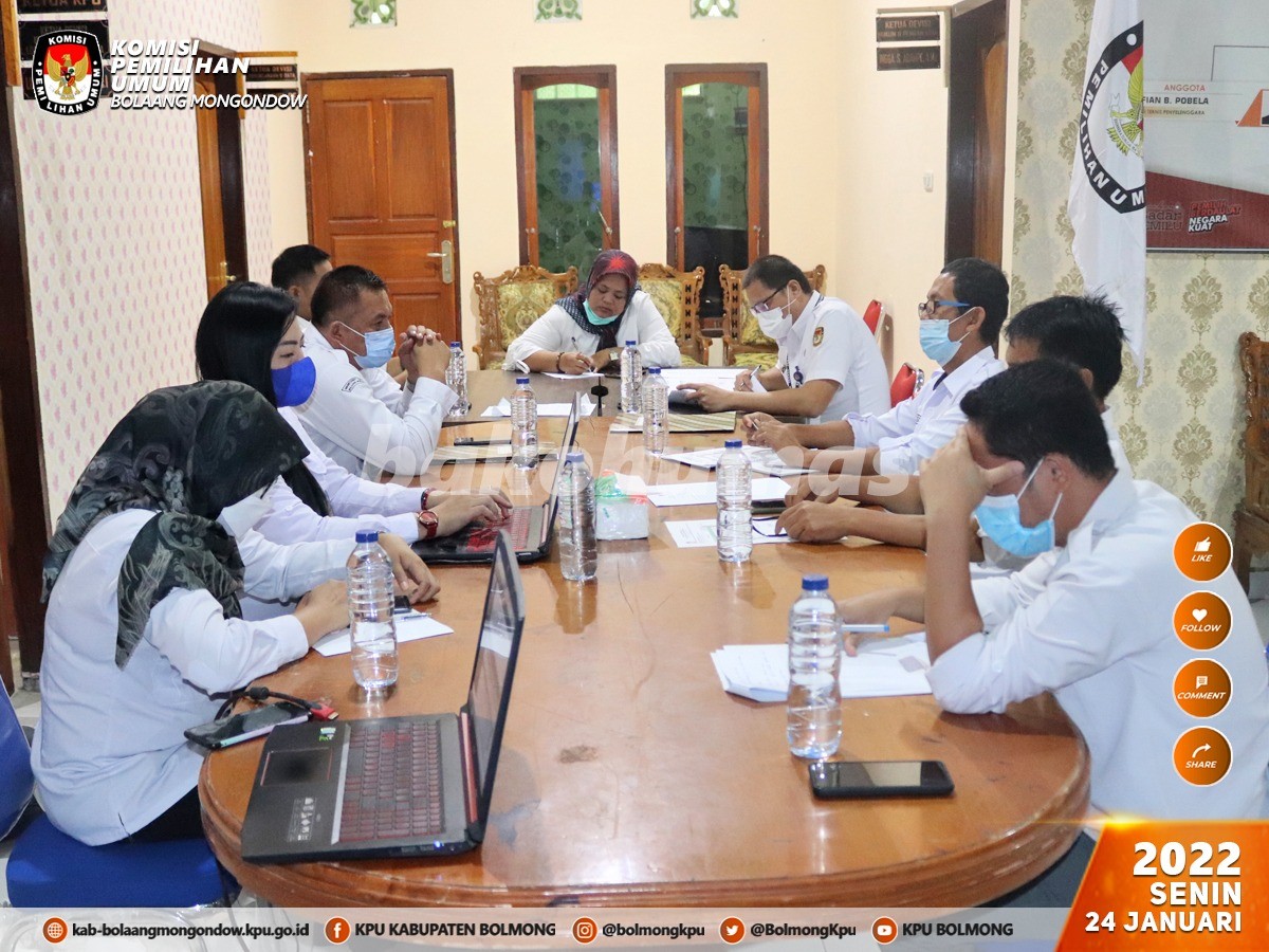 Lolak, Bolmong, kab-bolaangmongondow.kpu.go.id - Setelah pelaksanaan Apel Pagi pada Senin (24/1), KPU Kabupaten Bolaang Mongondow melanjutkan agenda lembaga dengan melaksanakan Rapat Pleno Rutin Minggu IV Januari 2022 yang dihadiri secara paripurna oleh Ketua dan Anggota KPU bersama Sekretaris, para Kepala Sub Bagian dan Bendahara.