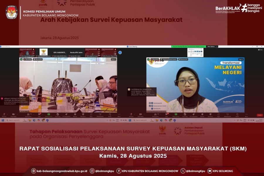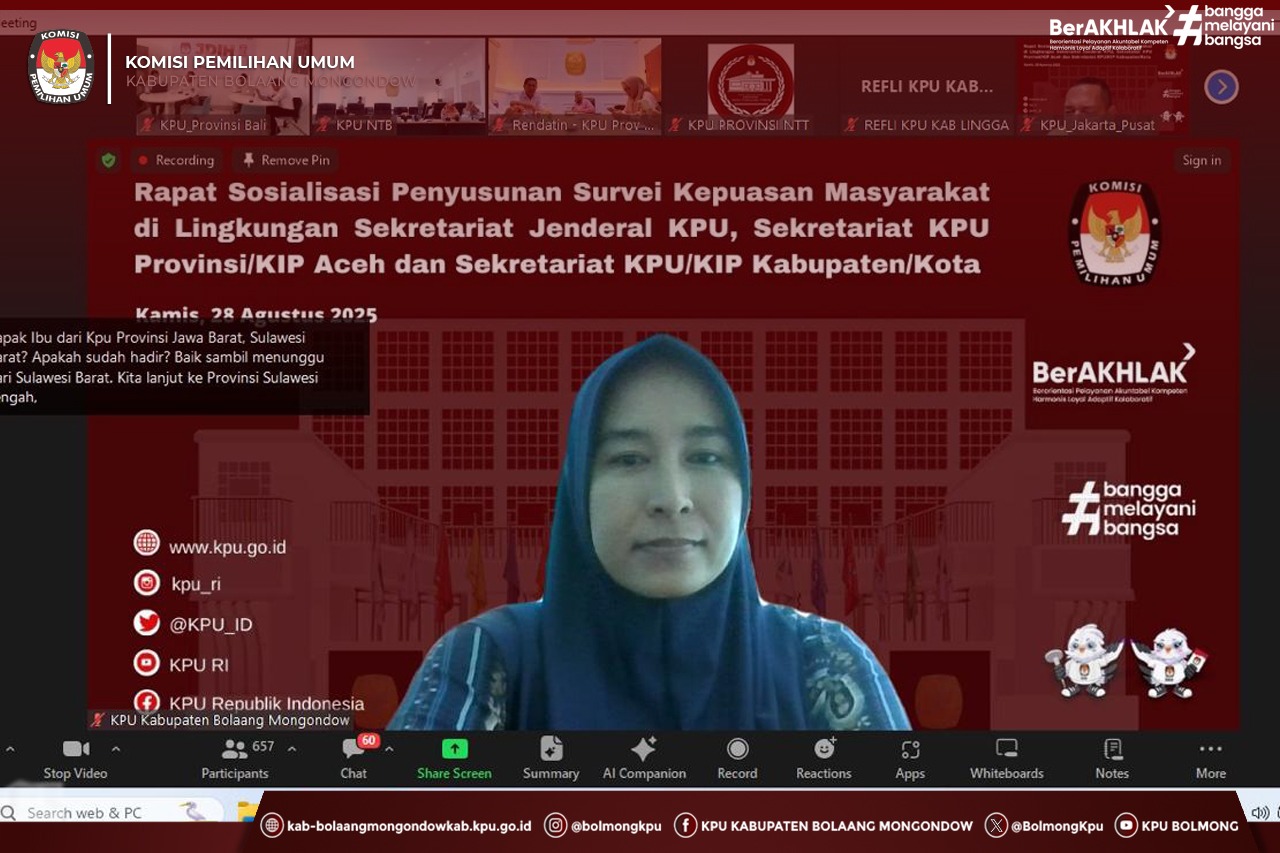 Lolak, kab-bolaangmongondow.kpu.go.id - KPU Bolaang Mongondow mengikuti Rapat Sosialisasi Penyusunan Survei Kepuasan Masyarakat (SKM) Tahun 2025 di Lingkungan Sekretariat Jenderal KPU dan Sekretariat KPU Provinsi/KIP Aceh dan Sekretariat KPU/KIP Kabupaten/Kota yang diselenggarakan secara daring oleh KPU RI.