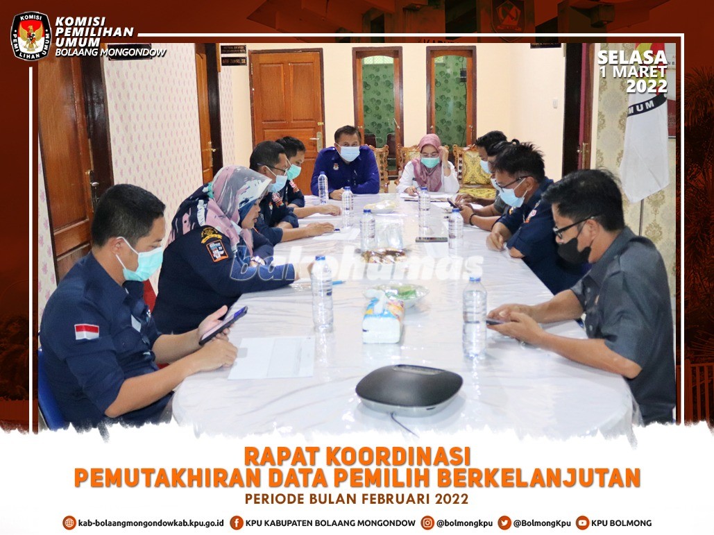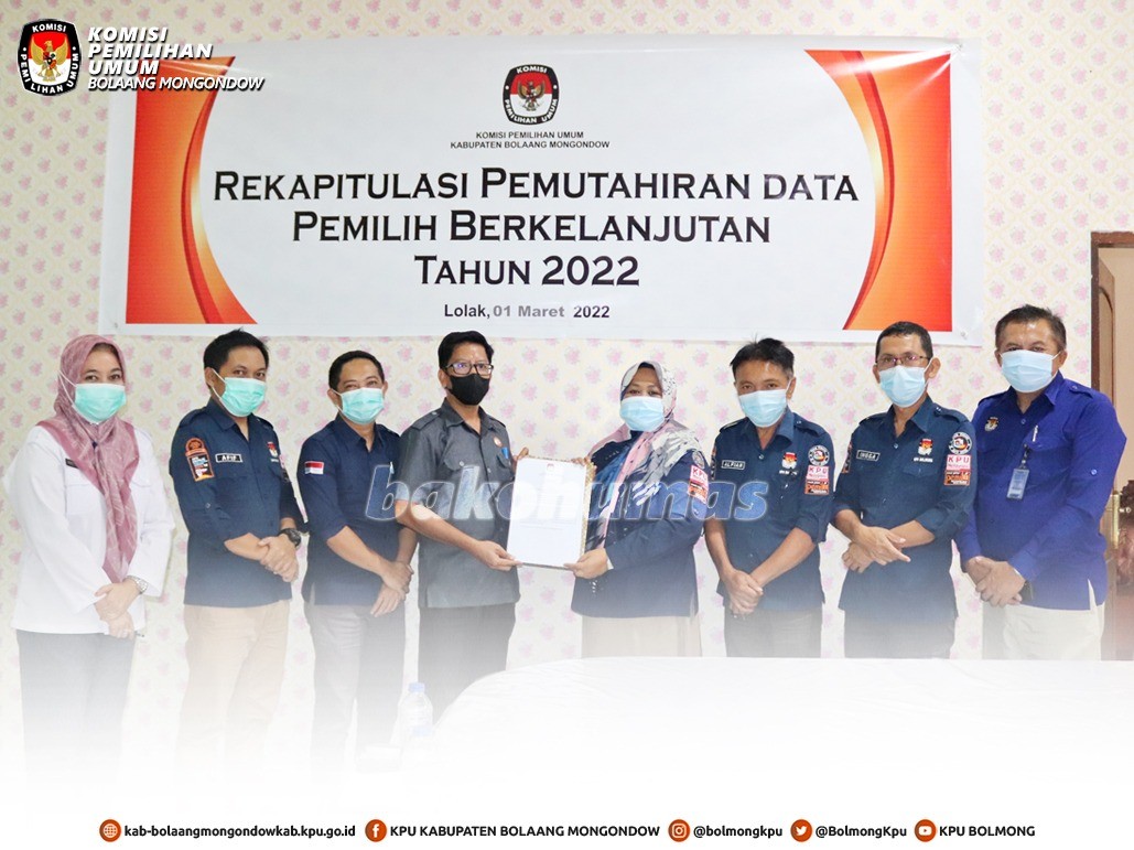 Lolak, Berdasarkan Peraturan Komisi Pemilihan Umum Republik Indonesia Nomor 6 Tahun 2021 perihal Pemutakhiran Data Pemilih Berkelanjutan Tahun 2021, maka Komisi Pemilihan Umum Kabupaten Bolaang Mongondow pada Selasa 1 Maret 2022 pukul 13.00 Wita telah melaksanakan Rekapitulasi Pemutakhiran Data Pemilih Berkelanjutan Tahun 2021 Periode bulan Februari 2022 bertempat di Kantor KPU Kabupaten Bolaang Mongondow dengan penerapan protokol kesehatan pencegahan dan pengendalian Covid-19. Kegiatan yang merupakan agenda rutin ini turut dihadiri oleh Bawaslu Kabupaten Bolaang Mongondow.