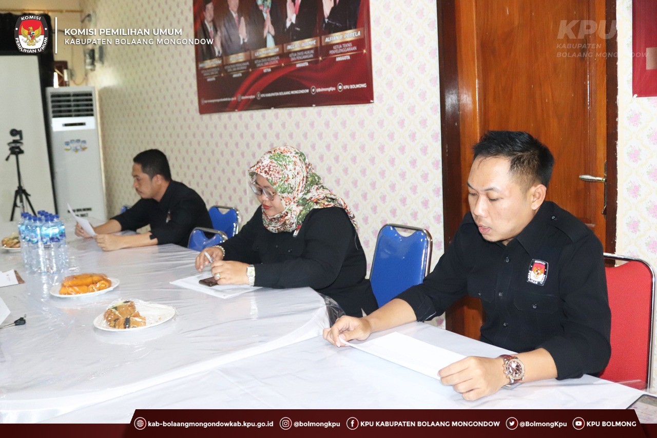 Lolak, kab-bolaangmongondow.kpu.go.id - Berdasarkan Peraturan Komisi Pemilihan Umum Republik Indonesia Nomor 6 Tahun 2021 perihal Pemutakhiran Data Pemilih Berkelanjutan Tahun 2021 guna memelihara, memperbaharui, dan mengevaluasi DPT Pemilu atau Pemilihan terakhir secara terus-menerus dan berkelanjutan yang digunakan untuk penyusunan DPT pada Pemilu dan/atau Pemilihan berikutnya, maka Komisi Pemilihan Umum Kabupaten Bolaang Mongondow kembali menggelar Rekapitulasi Pemutakhiran Data Pemilih Berkelanjutan Tahun 2021 Periode bulan Agustus Tahun 2022 pada Rabu (31/08). Adapun peserta yang hadir dalam kegiatan ini adalah Ketua dan Anggota KPU Kabupaten Bolaang Mongondow, Kasubbag Perencanaan, Data dan Informasi, Staf Sekretariat, turut hadir juga Staf Bawaslu Kabupaten Bolaang Mongondow.