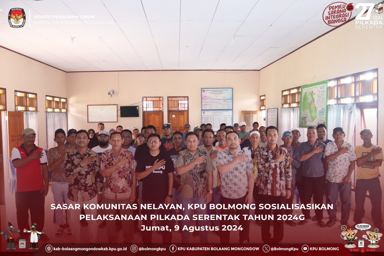 SASAR KOMUNITAS NELAYAN, KPU BOLMONG SOSIALISASIKAN PELAKSANAAN PILKADA SERENTAK TAHUN 2024