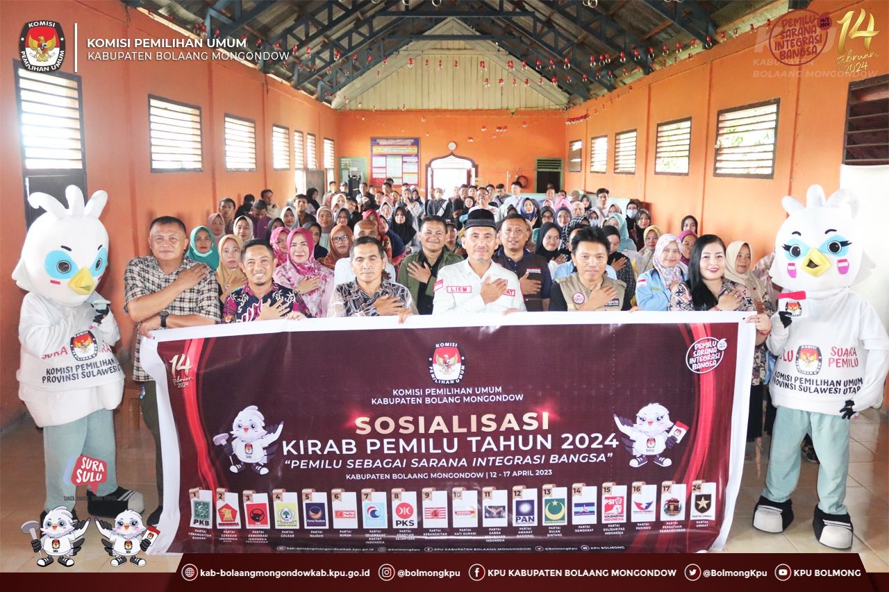 Sebelum dan sesudah pelaksanaan kegiatan sosdiklih, perjalanan Kirab Pemilu yang membawa 18 (delapan belas) bendera partai politik melaksanakan roadshow dengan rute melewati beberapa desa-desa di Kecamatan Bolaang, Kecamatan Passi, Barat dan Kecamatan Bilalang yang turut diramaikan oleh PPK dan PPS.