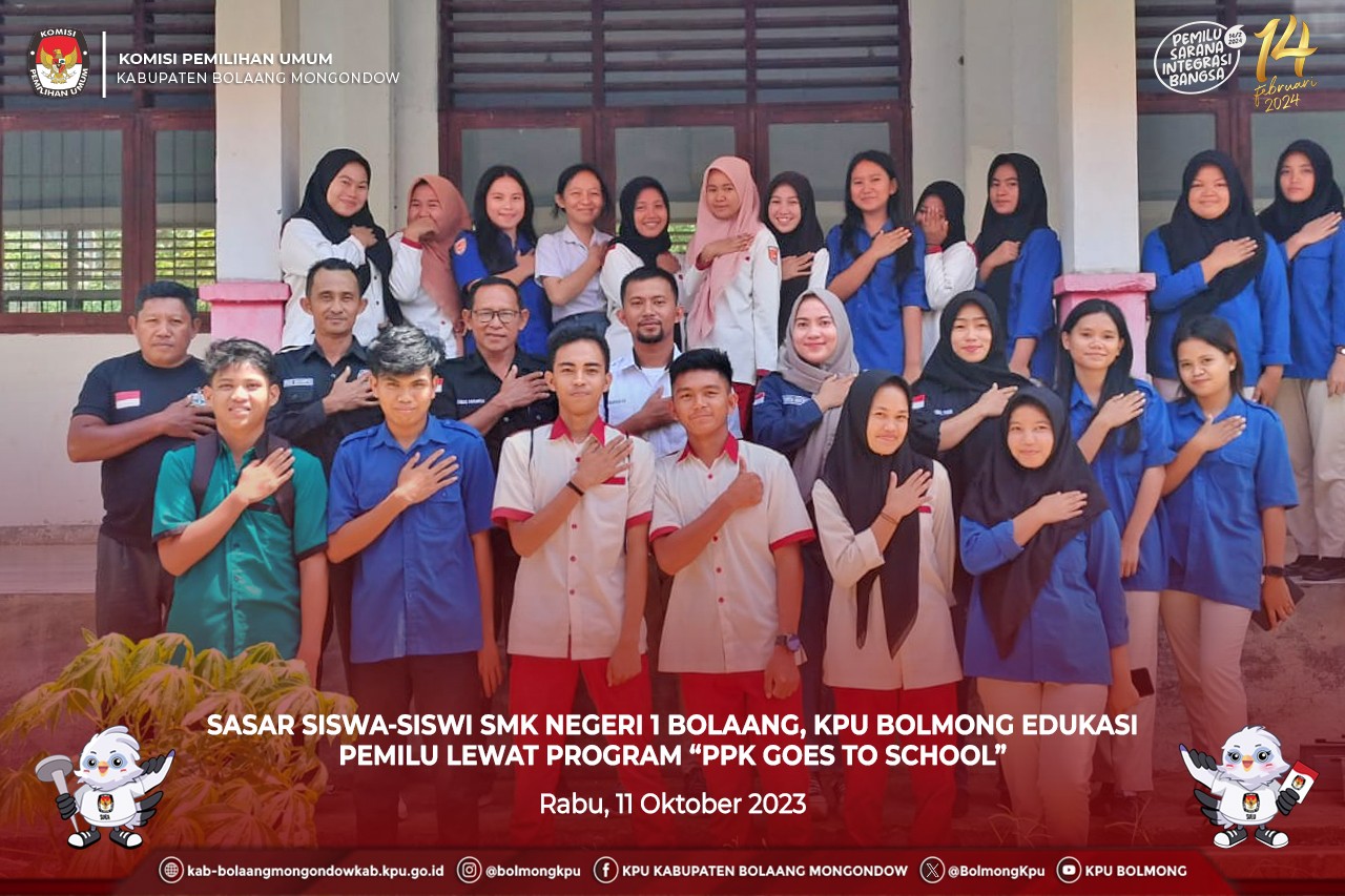 SASAR SISWA-SISWI SMK NEGERI 1 BOLAANG, KPU BOLMONG EDUKASI PEMILU LEWAT PROGRAM “PPK GOES TO SCHOOL”