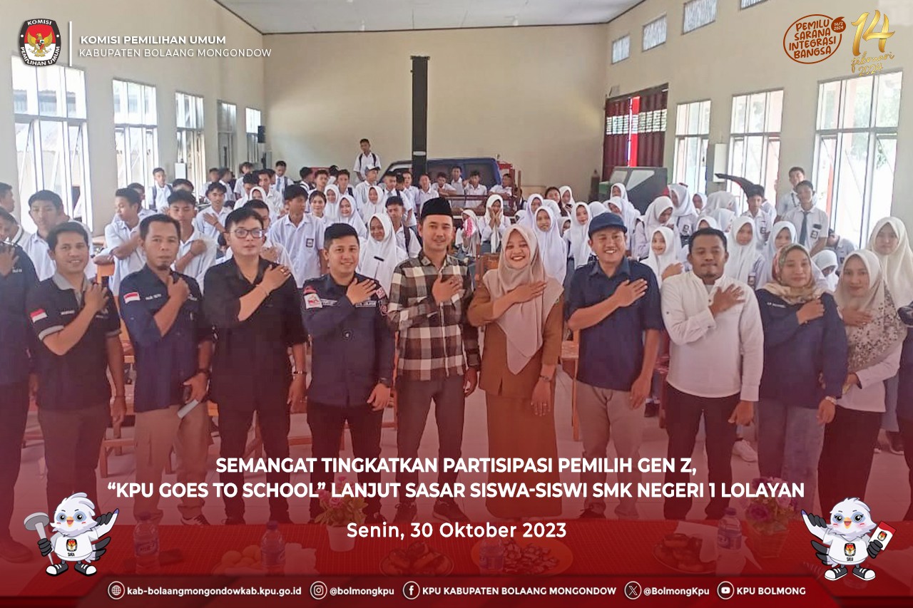 SEMANGAT TINGKATKAN PARTISIPASI PEMILIH GEN Z, “KPU GOES TO SCHOOL” LANJUT SASAR SISWA-SISWI SMK NEGERI 1 LOLAYAN