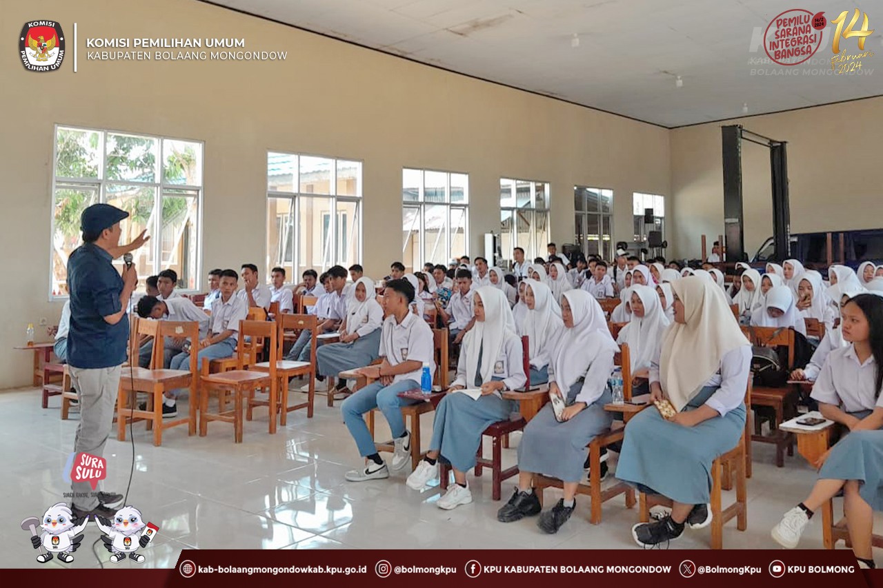 Lolak, kab-bolaangmongondow.kpu.go.id - setelah sukses menggelar program sosialisasi “PPK Goes to School” di Sekolah Menengah Atas (SMA)/Sekolah Menengah Kejuruan (SMK) Yadika Kopandakan 2 pada bulan September 2023, kali ini Komisi Pemilihan Umum (KPU) Kabupaten Bolaang Mongondow (Bolmong) melalui Panitia Pemilihan Kecamatan (PPK) Lolayan kembali menggelar “PPK Goes To School” di SMK Negeri 1 Lolayan, Senin (30/10/2023).
