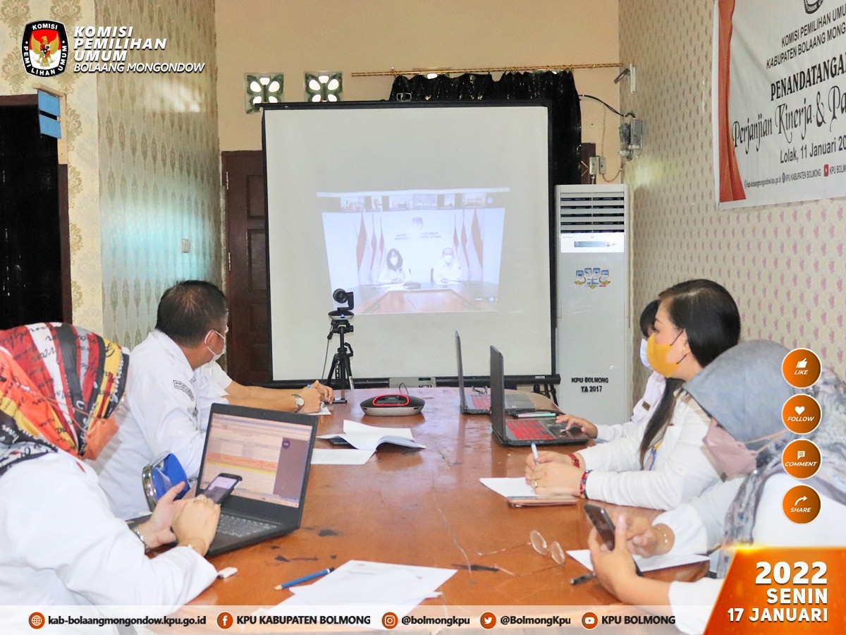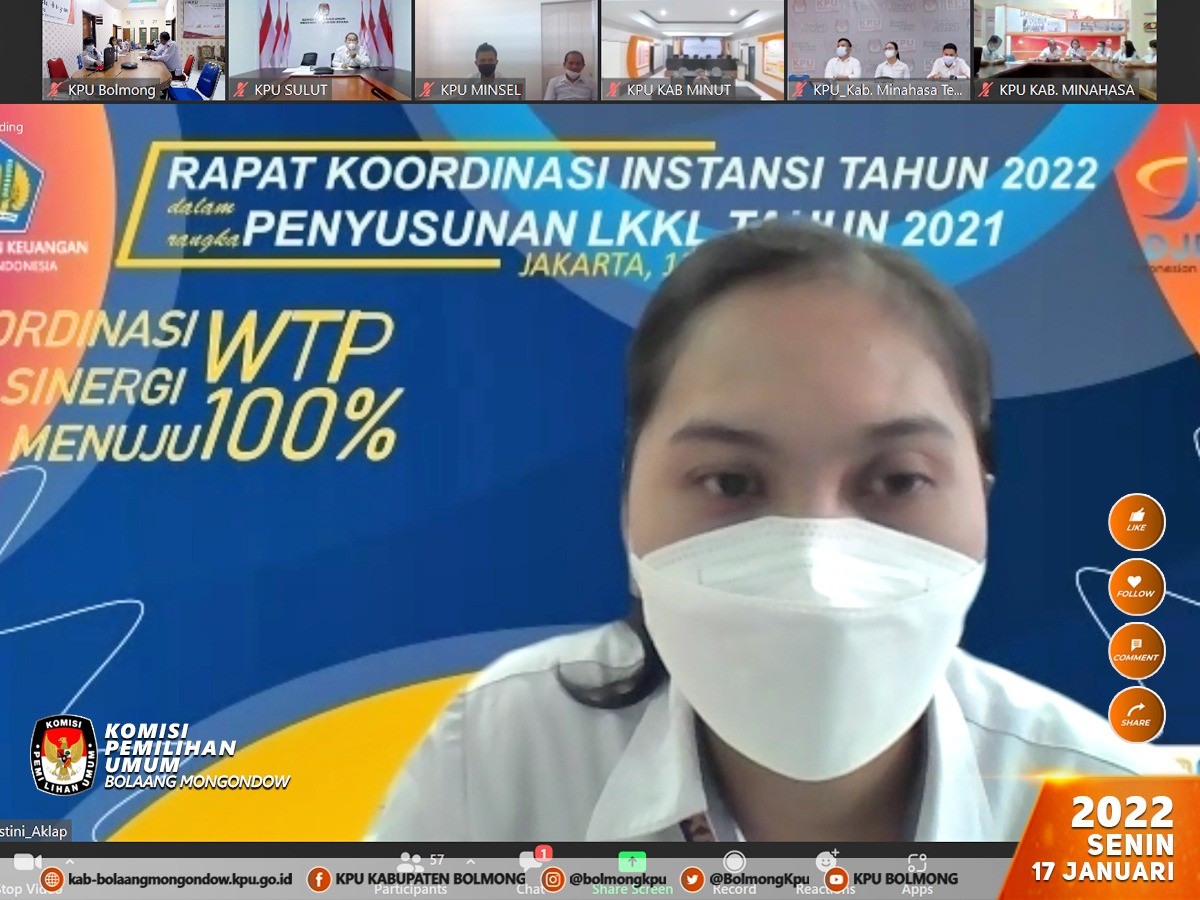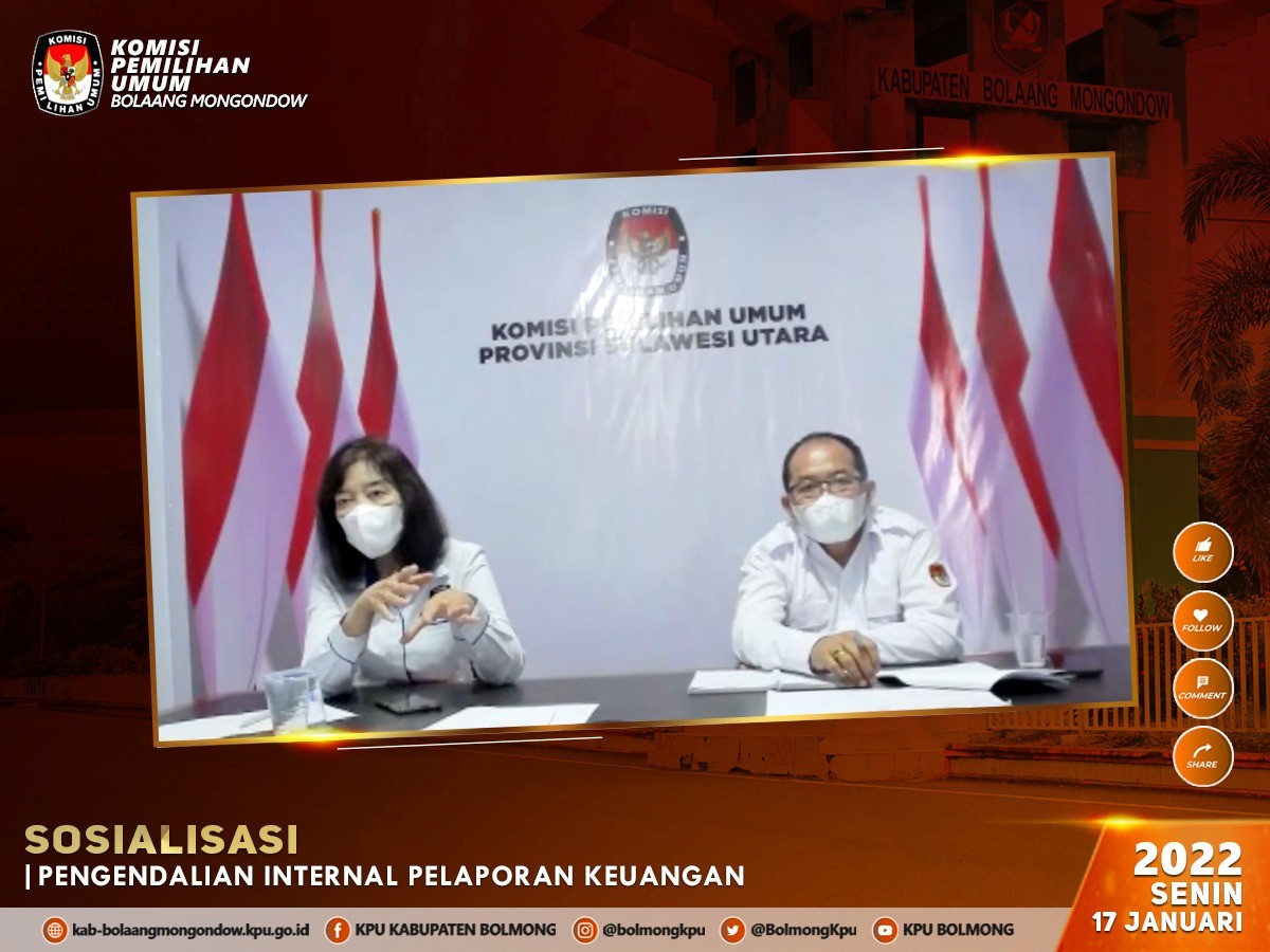 Lolak, Bolmong, kab-bolaangmongondow.kpu.go.id - KPU Kabupaten Bolaang Mongondow mengikuti kegiatan Sosialisasi Pengendalian Intern atas Pelaporan Keuangan (PIPK) yang digelar KPU Provinsi Sulawesi Utara secara daring dengan mengundang Sekretaris dan personel yang tercantum dalam SK PIPK masing-masing satker dari 15 kabupaten/kota, Senin (17/1).