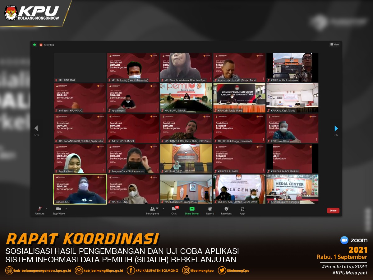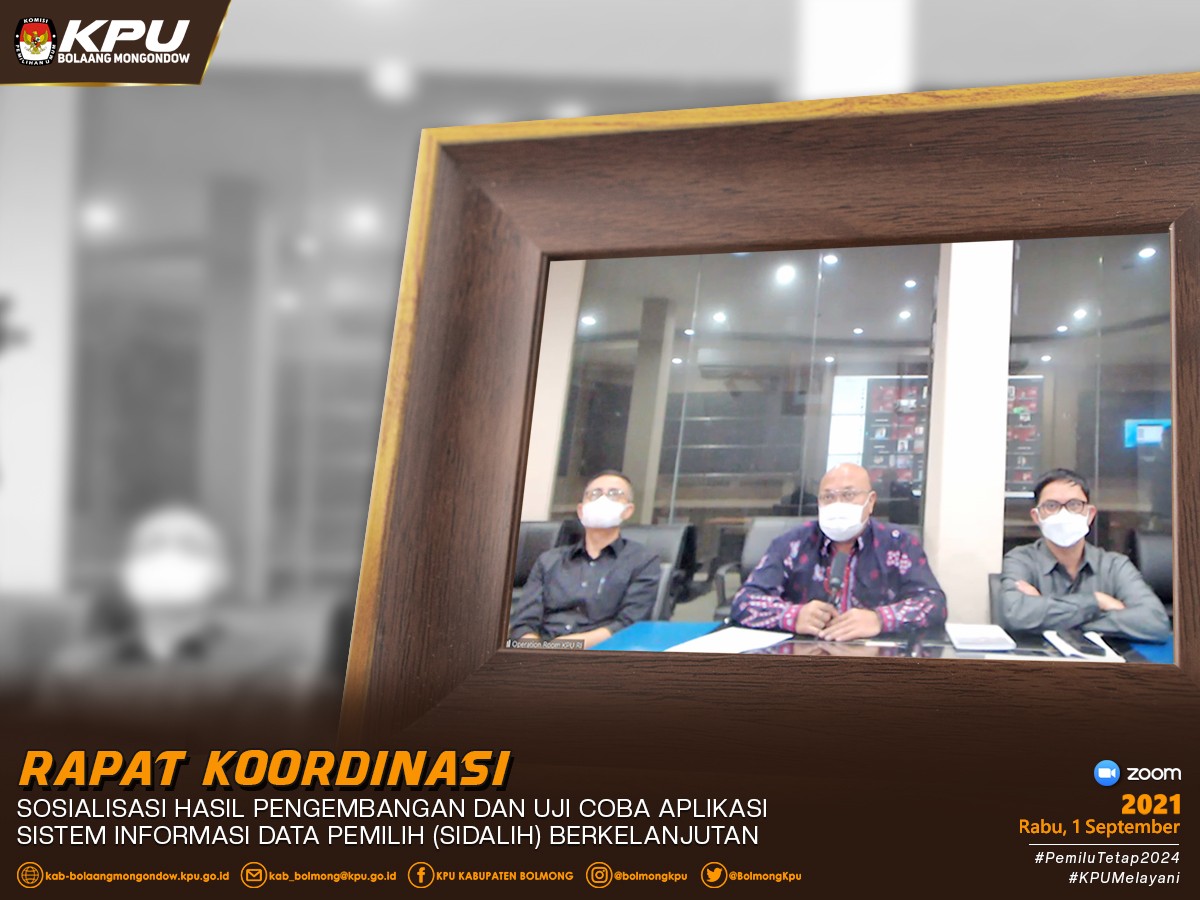 Lolak - Ketua Divisi Perencanaan, Data dan Informasi KPU Kabupaten Bolaang Mongondow, Afif Zuhri serta admin/operator Sidalih, Lendi Mamonto, bersama KPU Provinsi dan KPU Kabupaten/Kota se- Indonesia mengikuti Sosialisasi Aplikasi Sistem Informasi Data Pemilih (Sidalih) Berkelanjutan yang diselenggarakan oleh KPU RI secara virtual, pada Rabu (1/8) sesuai undangan nomor 439/TIK.02-Und/01 /KPU/VIII/2021 tanggal 30 Agustus 2021