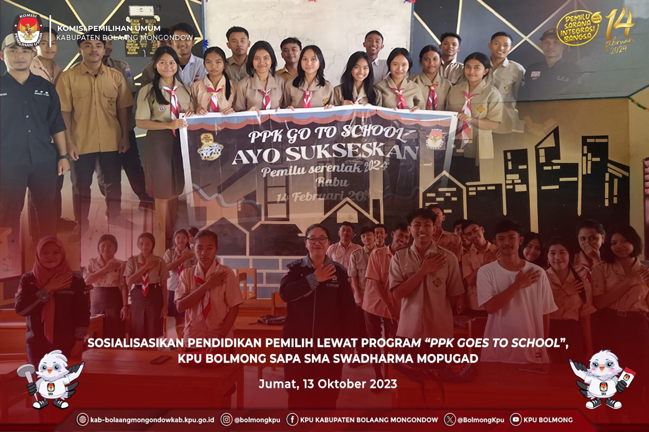 SOSIALISASIKAN PENDIDIKAN PEMILIH LEWAT PROGRAM “PPK GOES TO SCHOOL”, KPU BOLMONG SAPA SMA SWADHARMA MOPUGAD