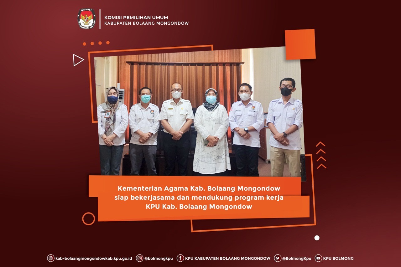 Lolak, kab-bolaangmongondow.kpu.go.id - KPU Kabupaten Bolaang Mongondow melaksanakan Kunjungan Kerja ke Kementerian Agama Kabupaten Bolaang Mongondow dalam rangka menindaklanjuti Nota Kesepahaman Antara Komisi Pemilihan Umum Provinsi Sulawesi Utara dan Kementerian Agama Provinsi Sulawesi Utara tentang Pemutakhiran Data Pemilih Berkelanjutan. Hal ini dilakukan untuk meningkatkan kualitas dalam proses memperbarui (updating) data pemilih bagi pemilih pemula (11/04).