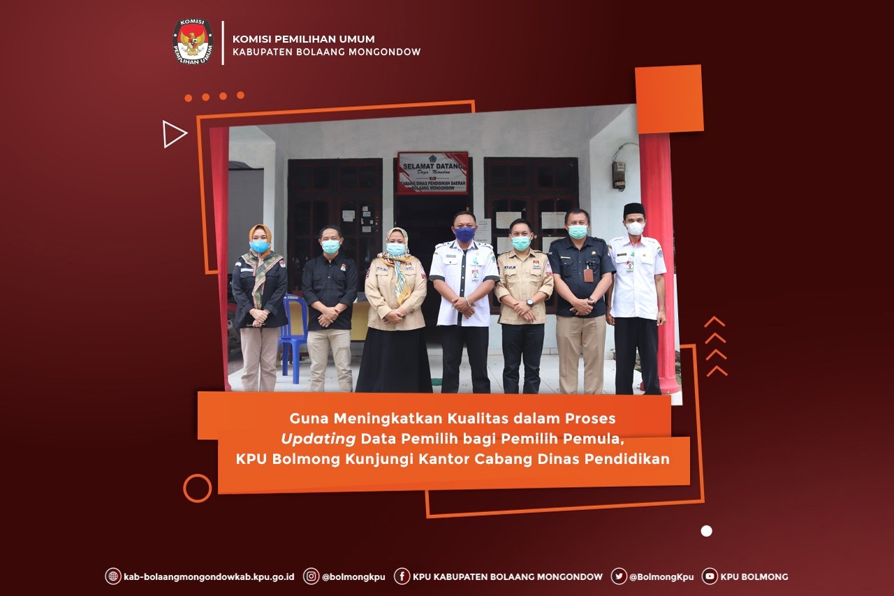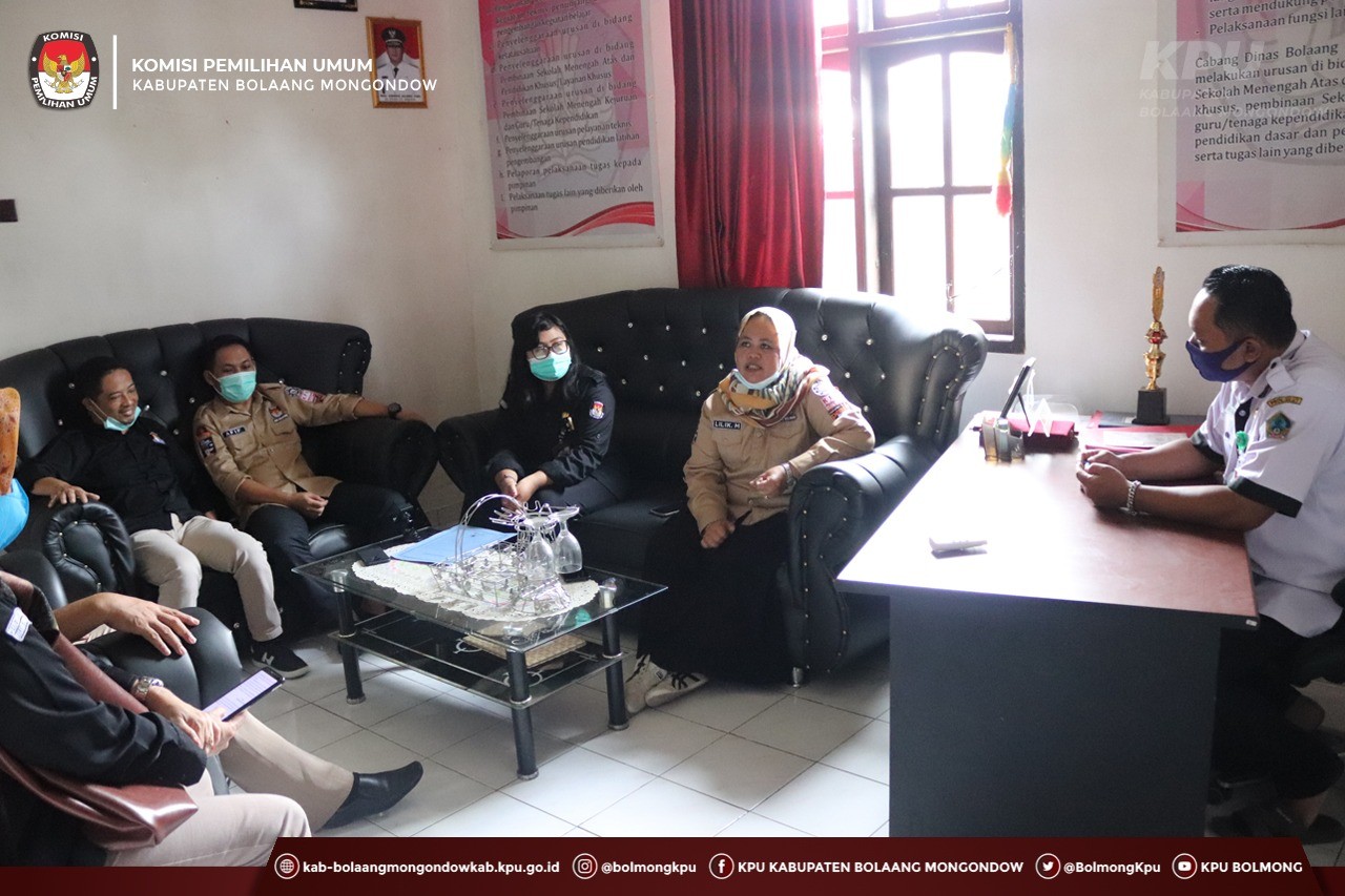 Lolak, kab-bolaangmongondow.kpu.go.id - Dalam rangka menindaklanjuti Nota Kesepahaman Antara Komisi Pemilihan Umum Provinsi Sulawesi Utara dan Dinas Pendidikan Provinsi Sulawesi Utara tentang Pemuktahiran Data Pemilih Berkelanjutan serta guna meningkatkan kualitas dalam proses memperbarui (updating) data pemilih bagi pemilih pemula, KPU Kabupaten Bolaang Mongondow melaksanakan Kunjungan Kerja ke Kantor Cabang Dinas Pendidikan Daerah Bolaang Mongondow (13/04).