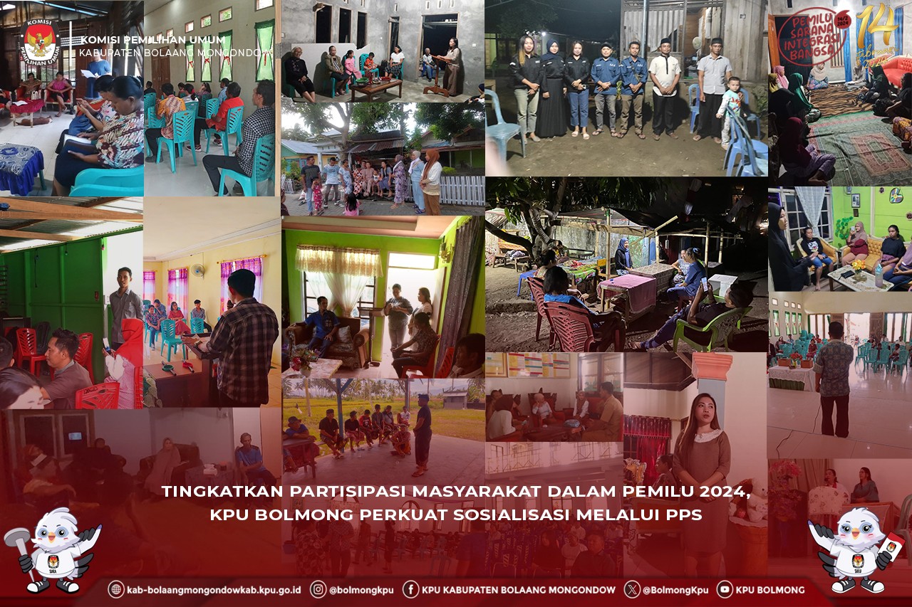Lolak, kab.bolaangmongondow.kpu.go.id – dalam rangka meningkatkan pengetahuan, pemahaman, dan kesadaran mengenai hak dan kewajiban, serta untuk meningkatkan partisipasi masyarakat dalam Pemilu 2024, KPU Kabupaten Bolaang Mongondow melalui Panitia Pemungutan Suara (PPS) telah melaksanakan berbagai kegiatan sosialisasi.