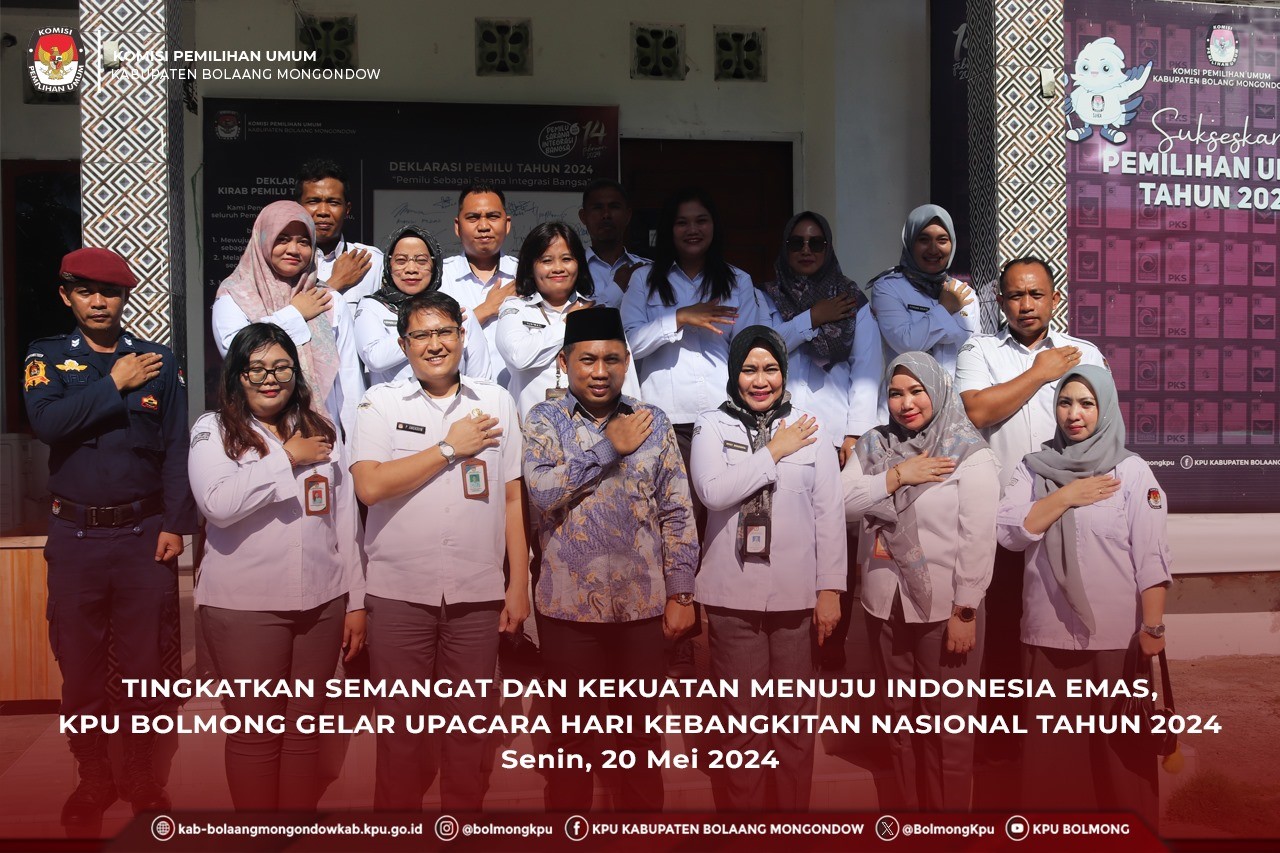 TINGKATKAN SEMANGAT DAN KEKUATAN MENUJU INDONESIA EMAS, KPU BOLMONG GELAR UPACARA HARI KEBANGKITAN NASIONAL TAHUN 2024